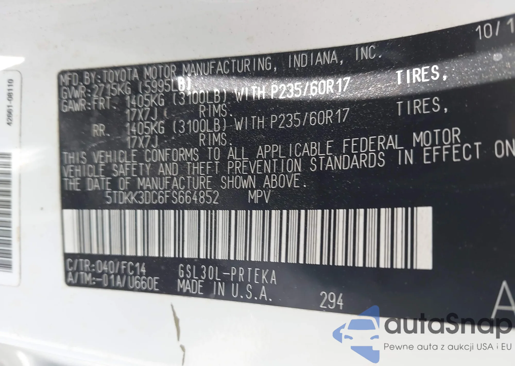 LOT: 42517486 VIN: 5TDKK3DC6FS664852