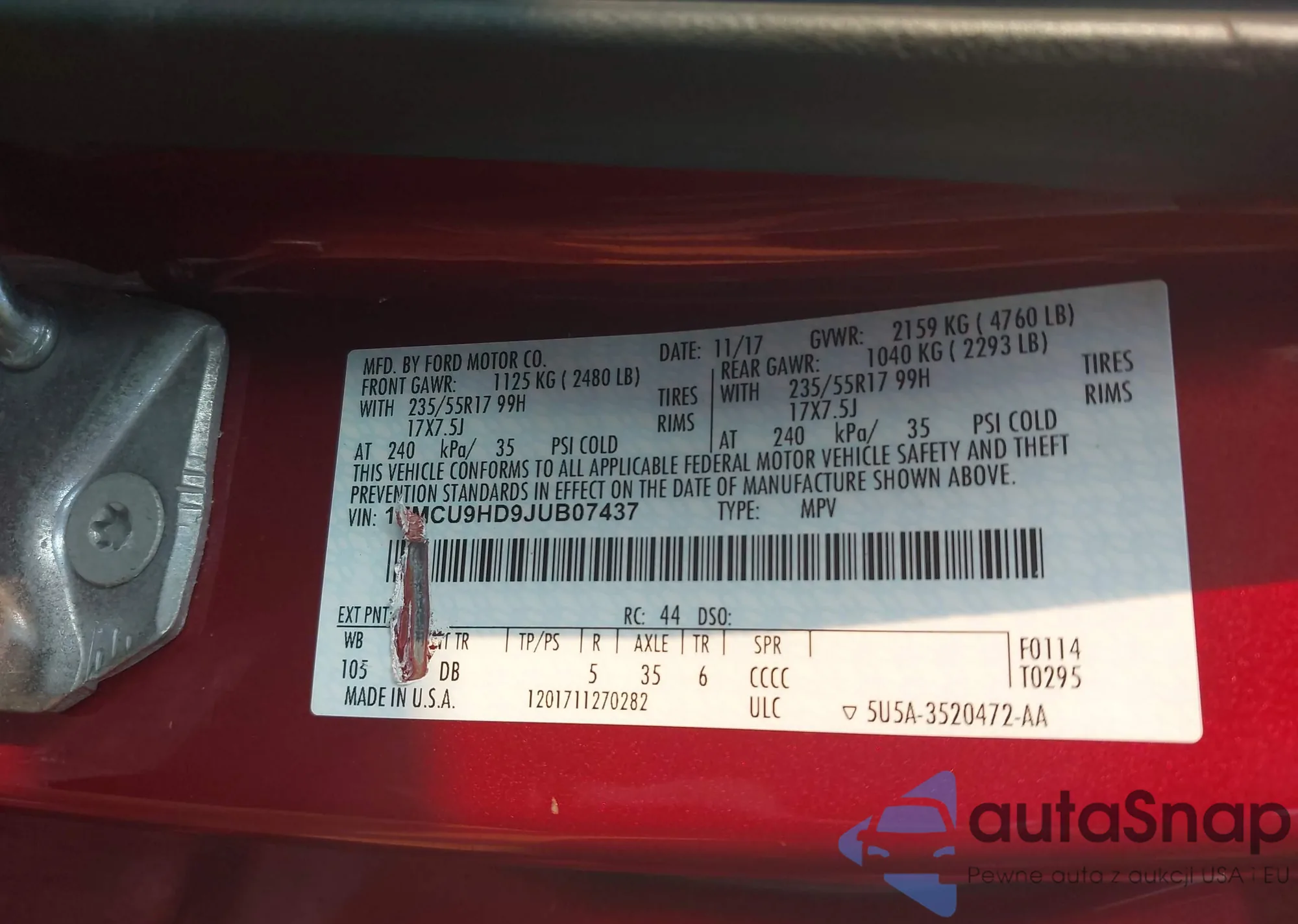 LOT: 43271878 VIN: JM3KFADM0M0470035