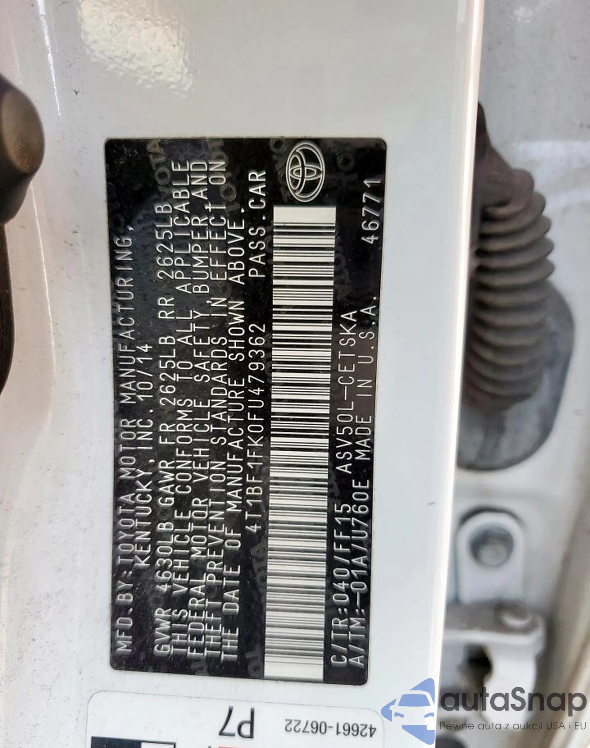 • VIN 4T1BF1FK0FU479362