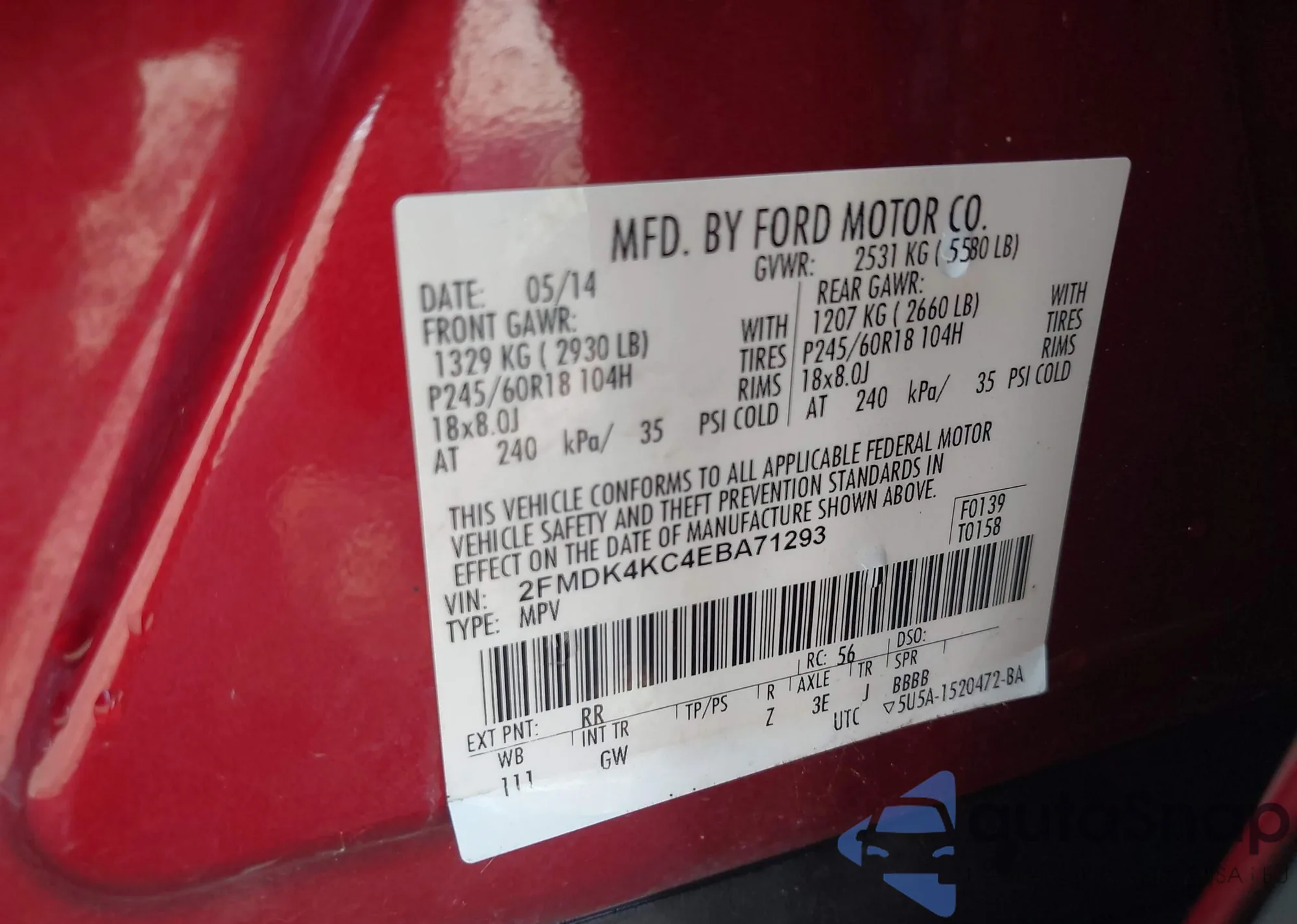 • VIN 2FMDK4KC4EBA71293