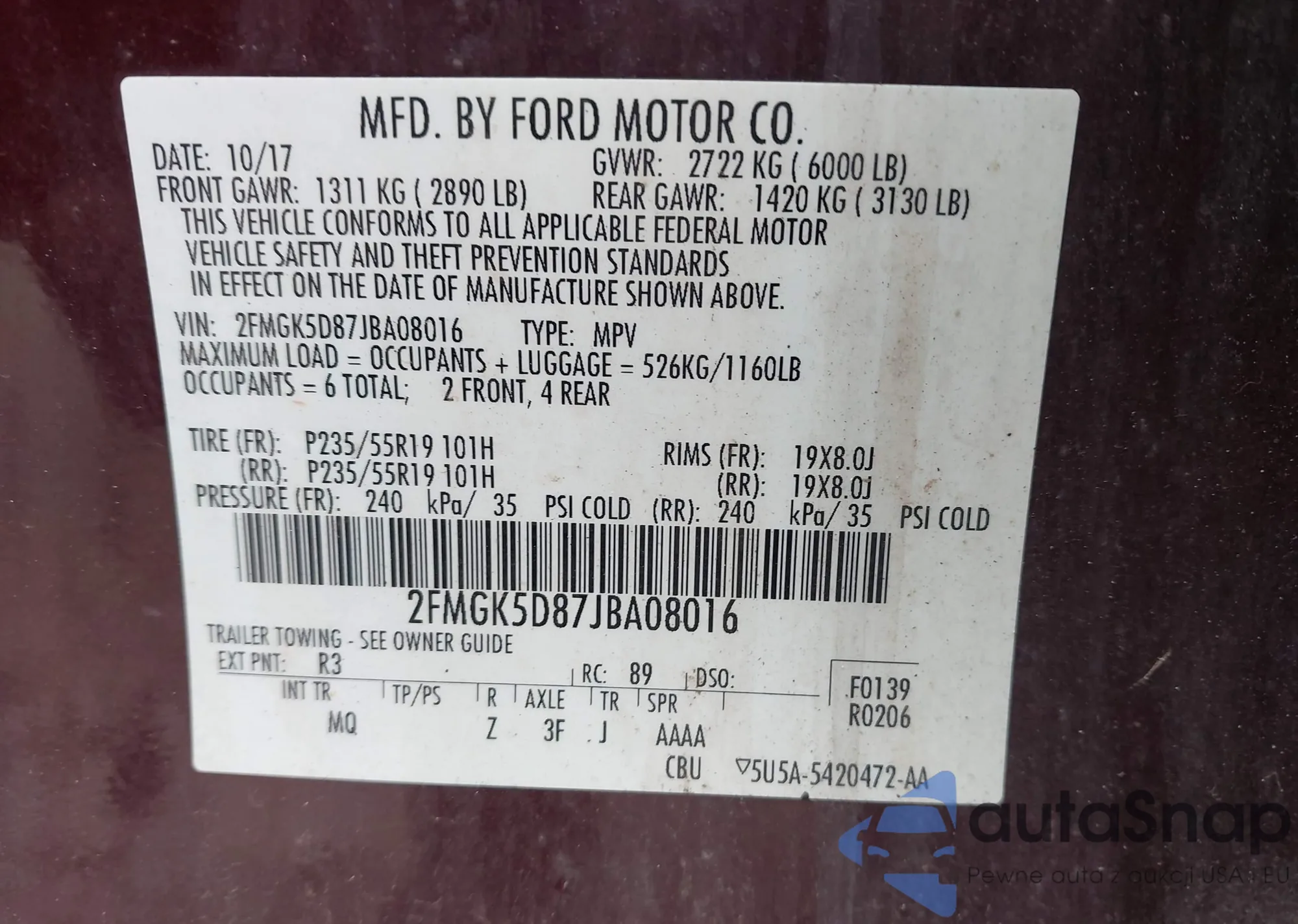 • VIN 2FMGK5D87JBA08016