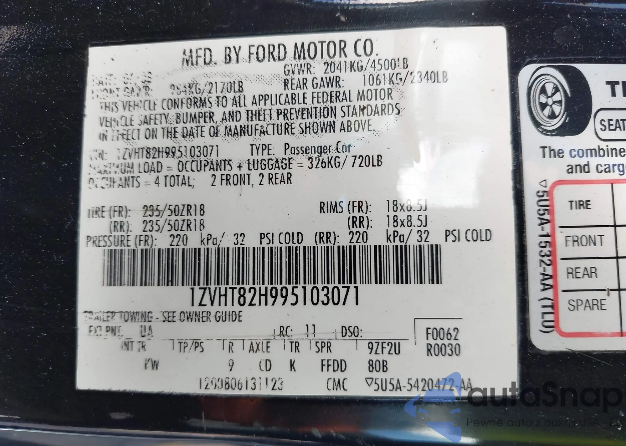 • VIN 1ZVHT82H995103071
