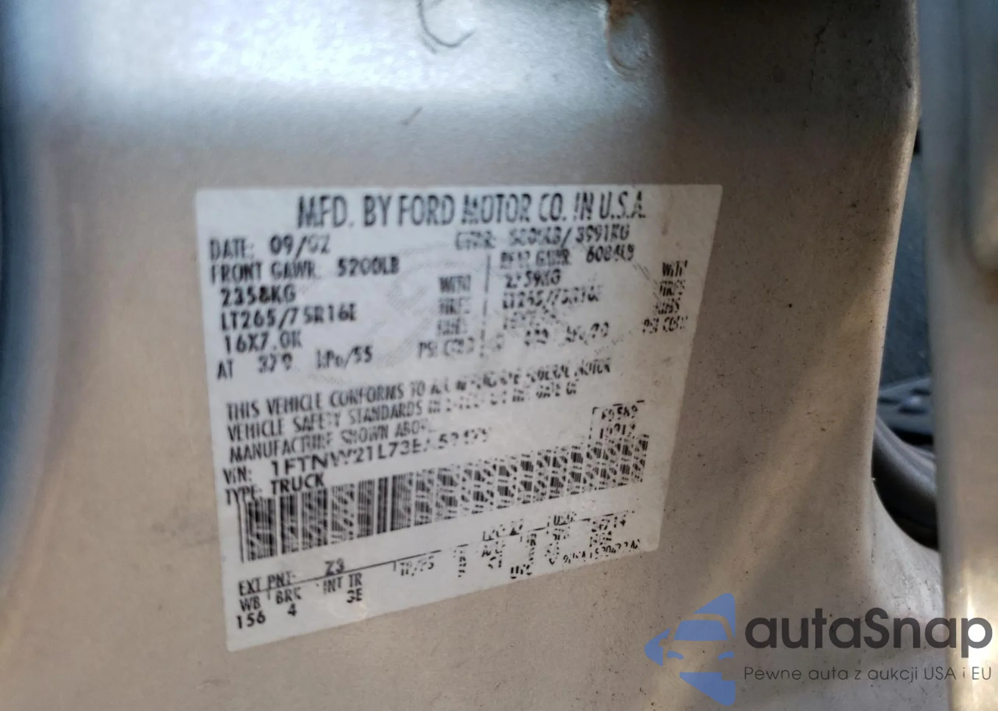 LOT: 69015425 VIN: 1FTNW21L73EA59479