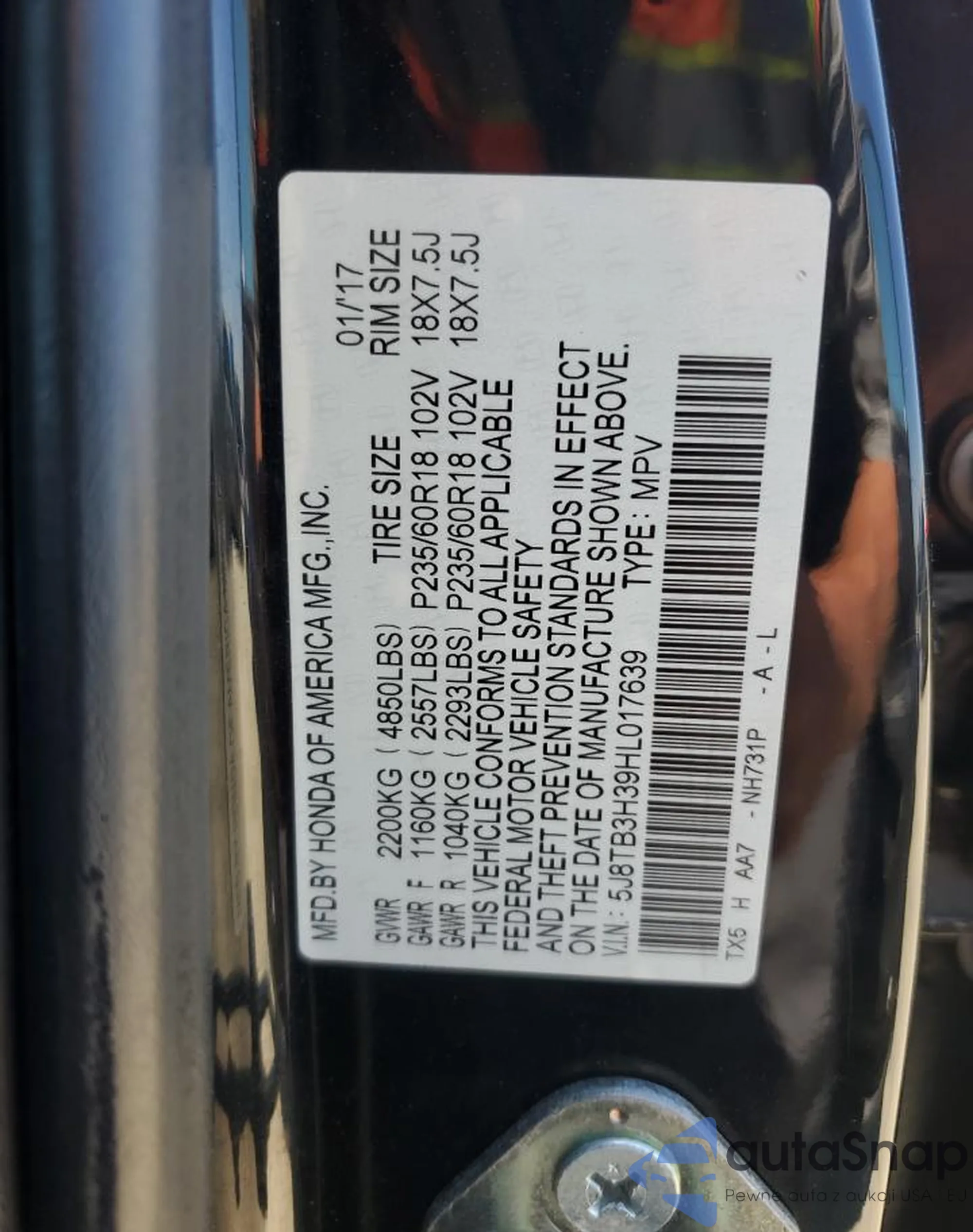 • VIN 1C4RJFCG7HC620337