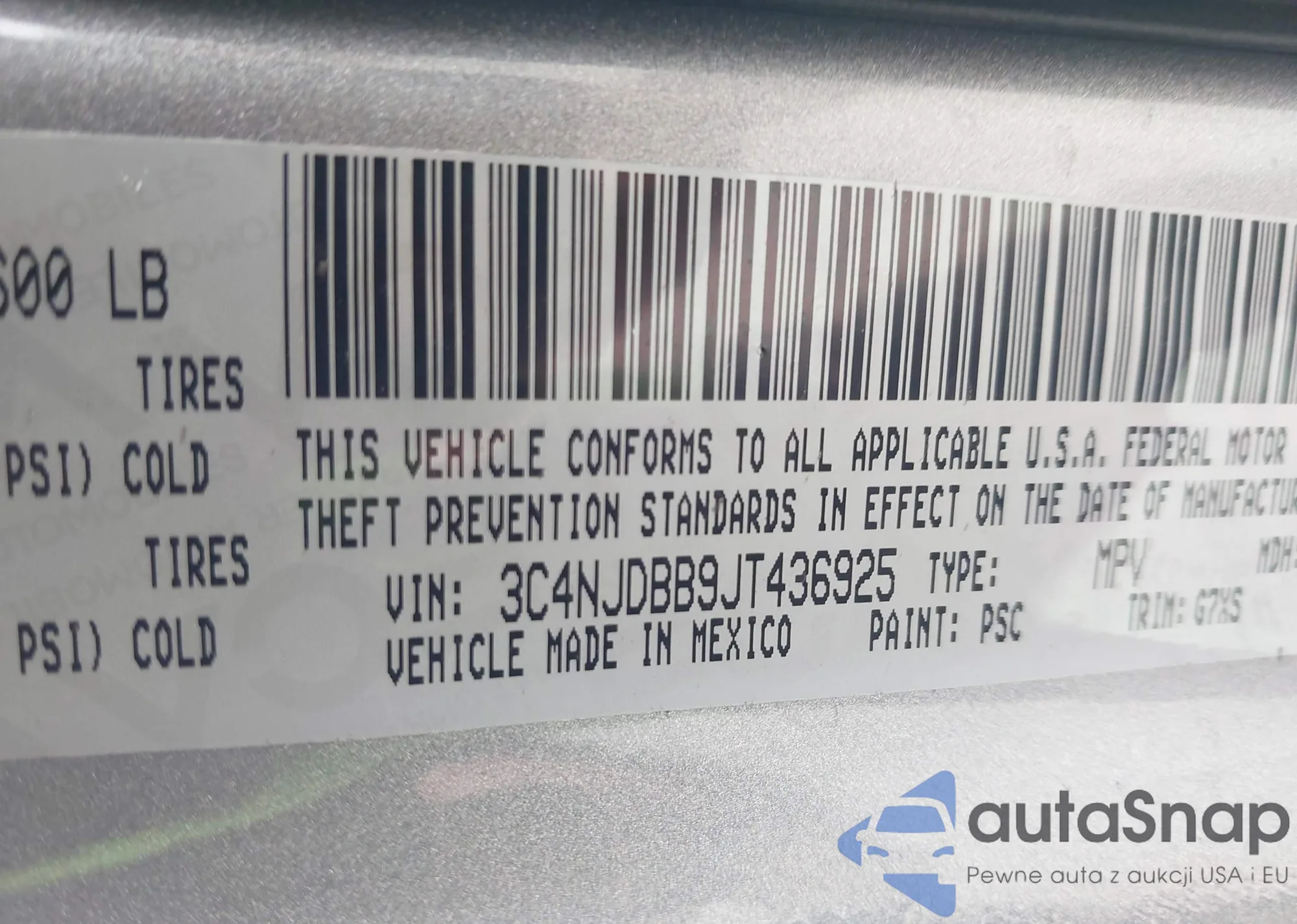 • VIN 3C4NJDBB9JT436925
