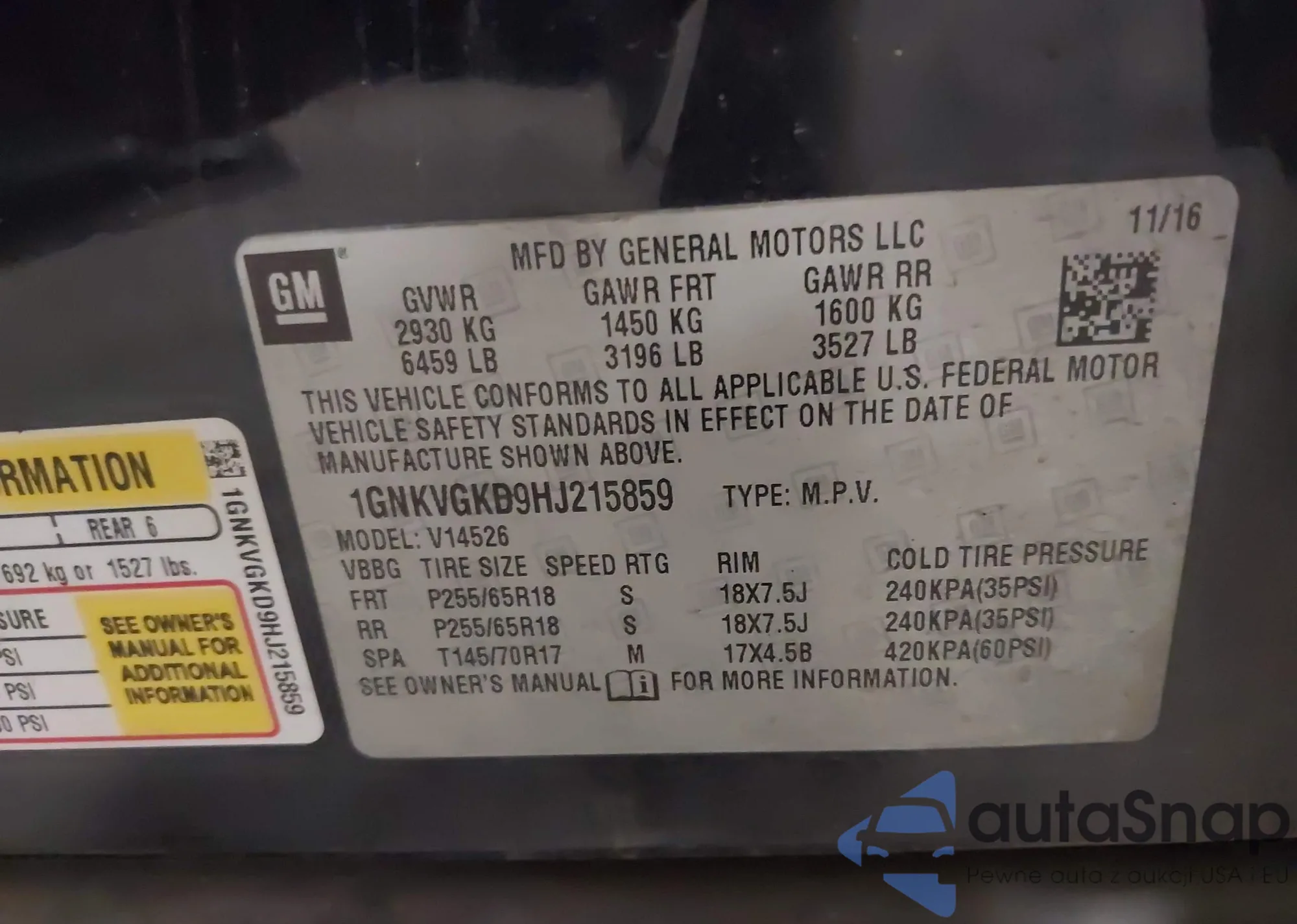 • VIN 1GNKVGKD9HJ215859