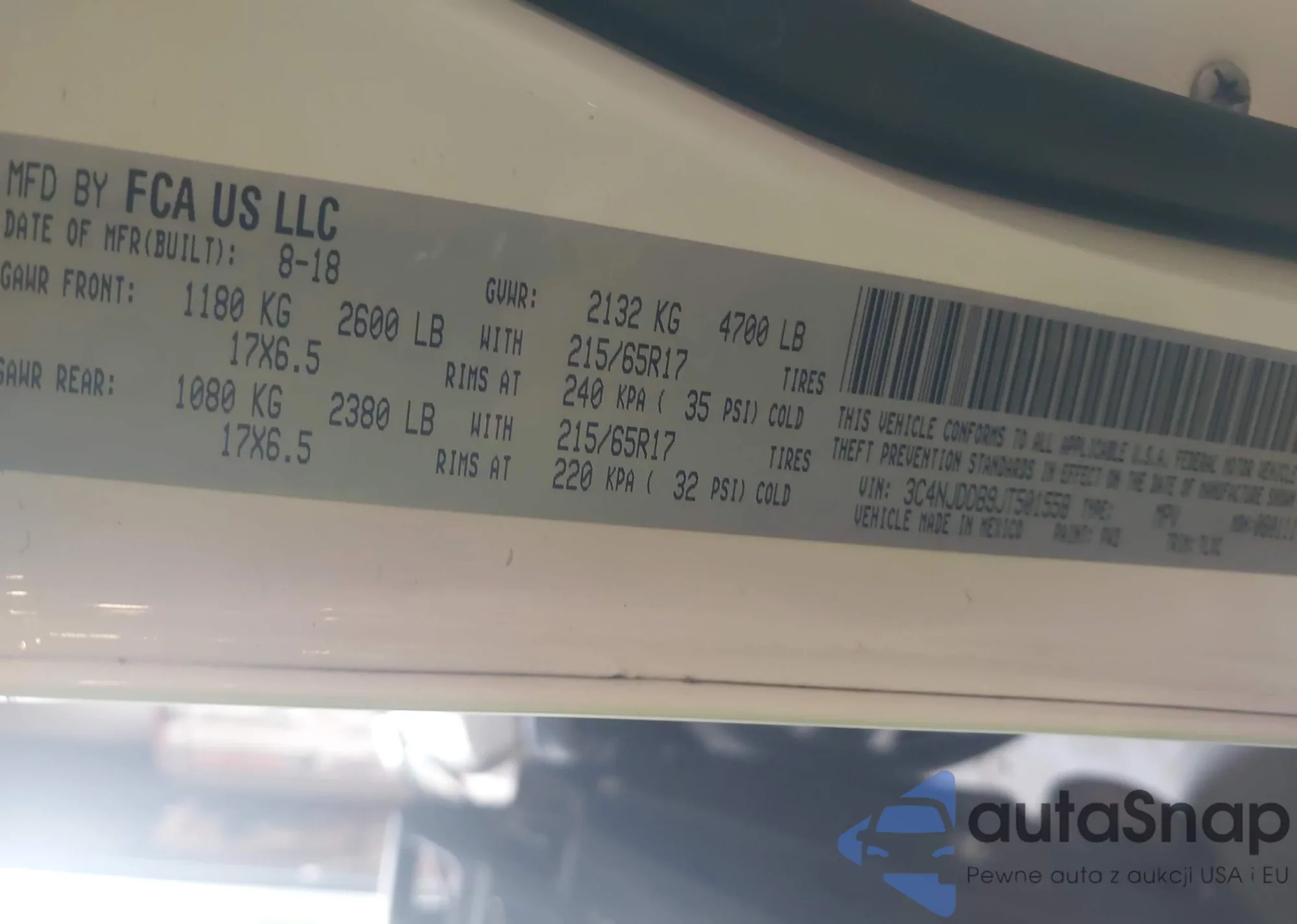 • VIN 3C4NJDDB9JT501558