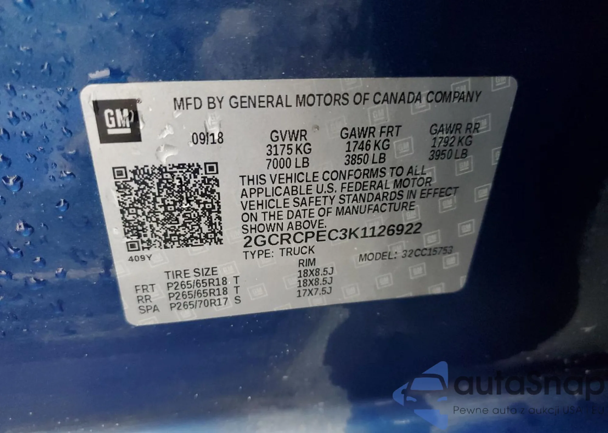 • VIN 2GCRCPEC3K1126922