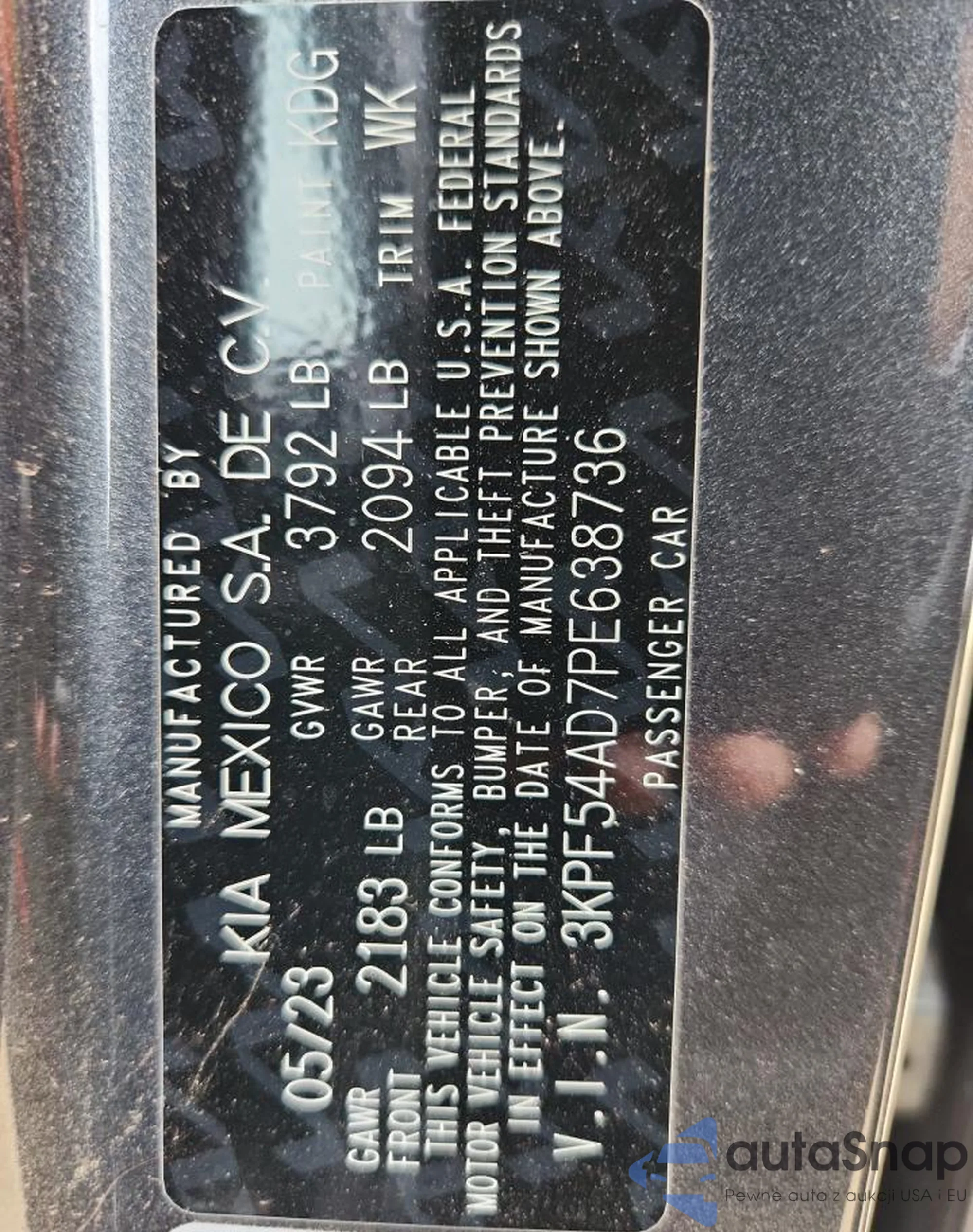 LOT: 70214205 VIN: 3KPF54AD7PE638736