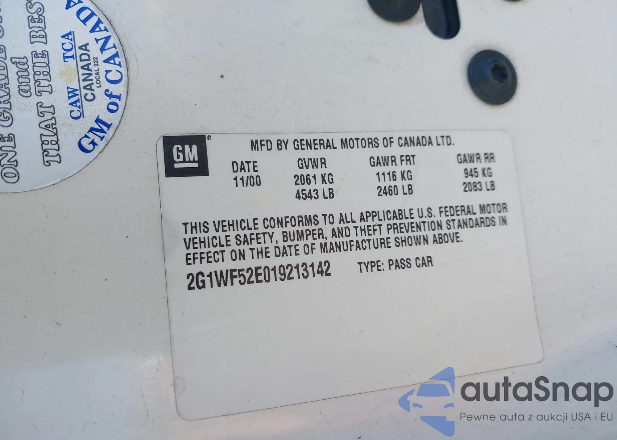 • VIN 2G1WF52E019213142