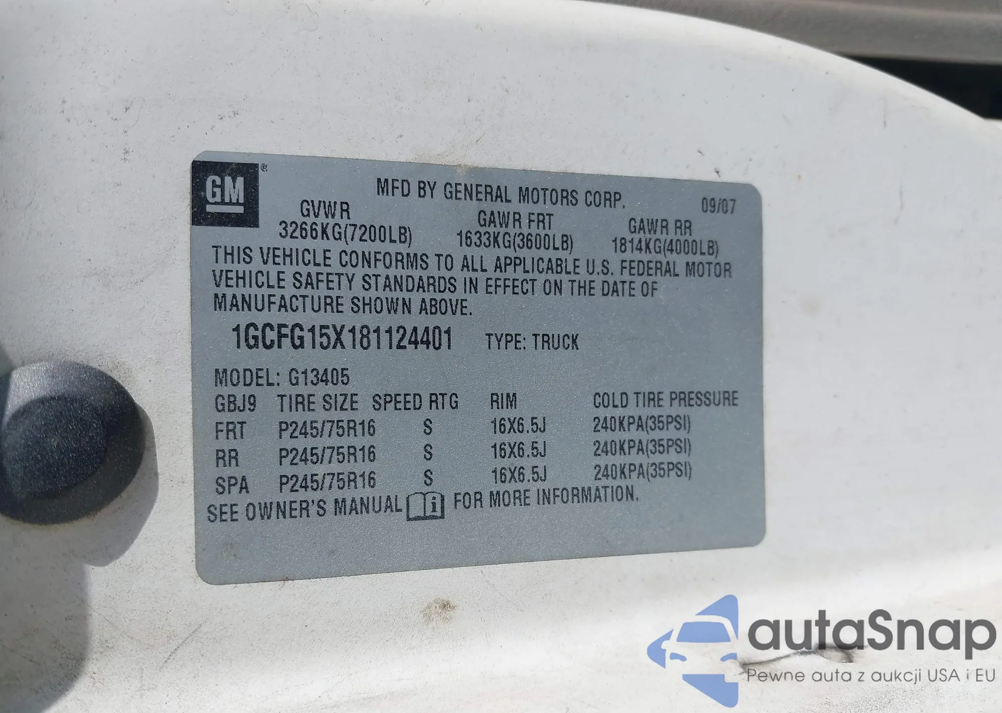 LOT: 43105606 VIN: 1GCFG15X181124401
