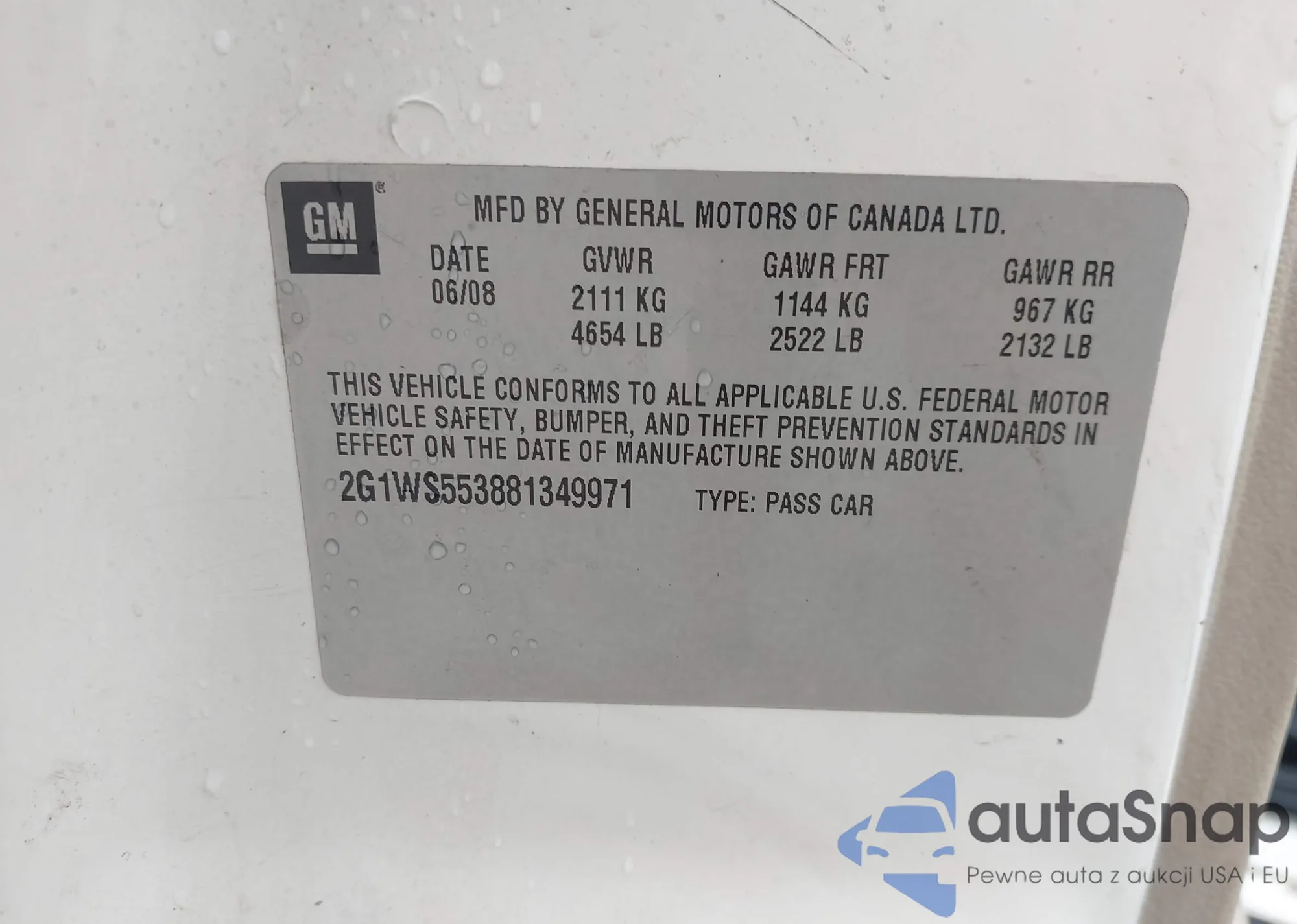 LOT: 43140350 VIN: 2G1WS553881349971