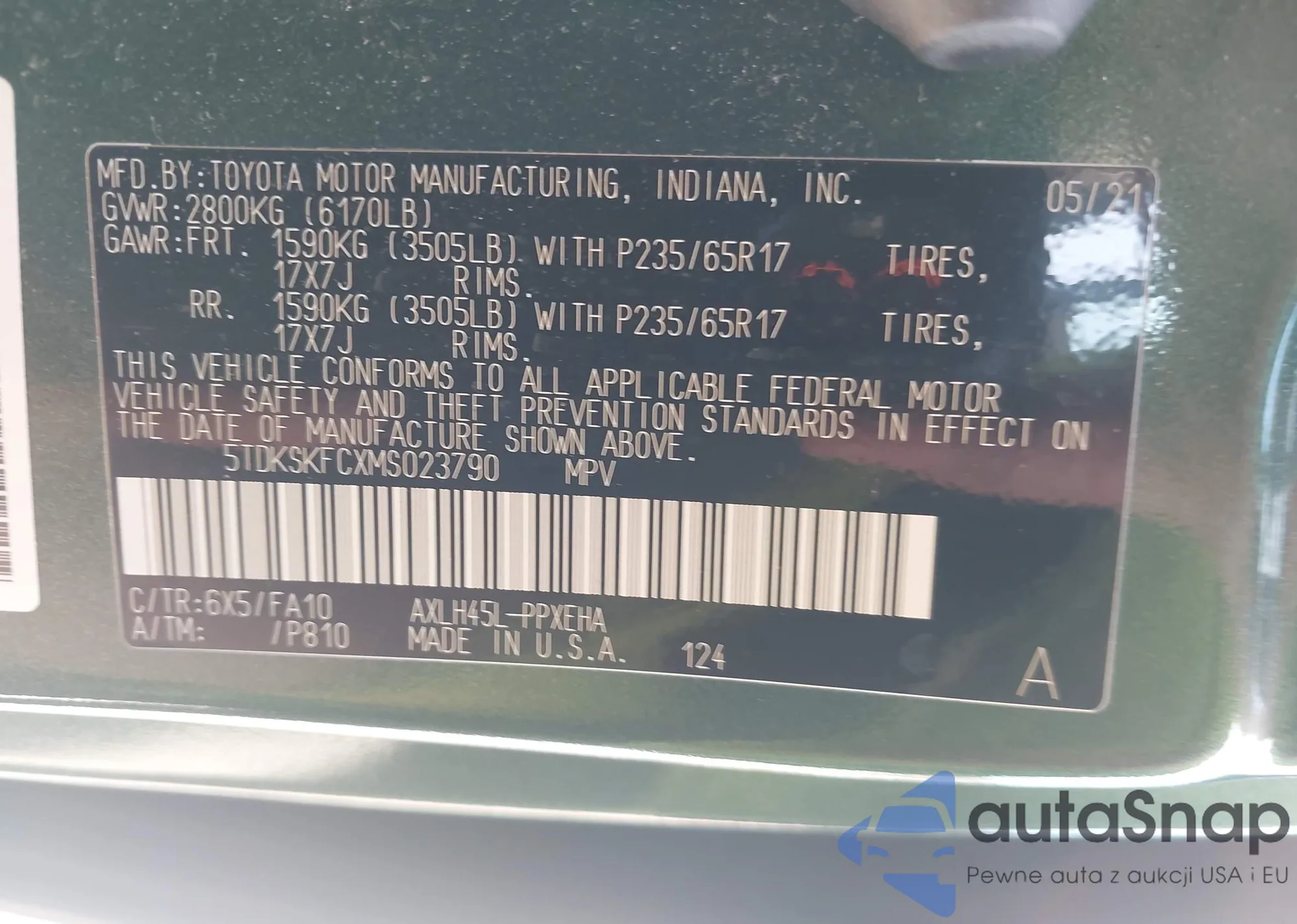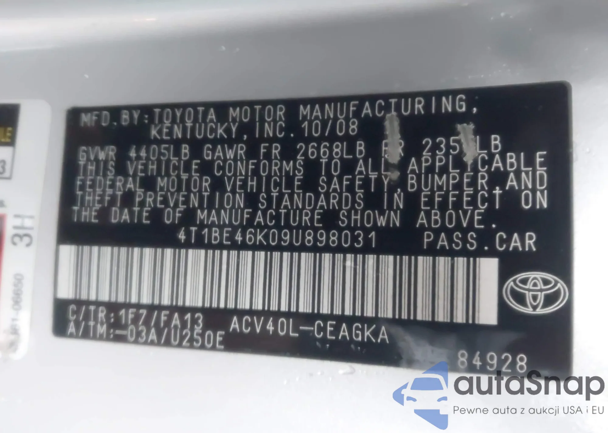 • VIN 4T3ZA3BB0DU067719