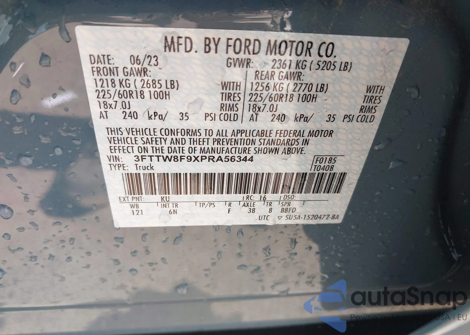 • VIN 1FADP5BUXDL518671