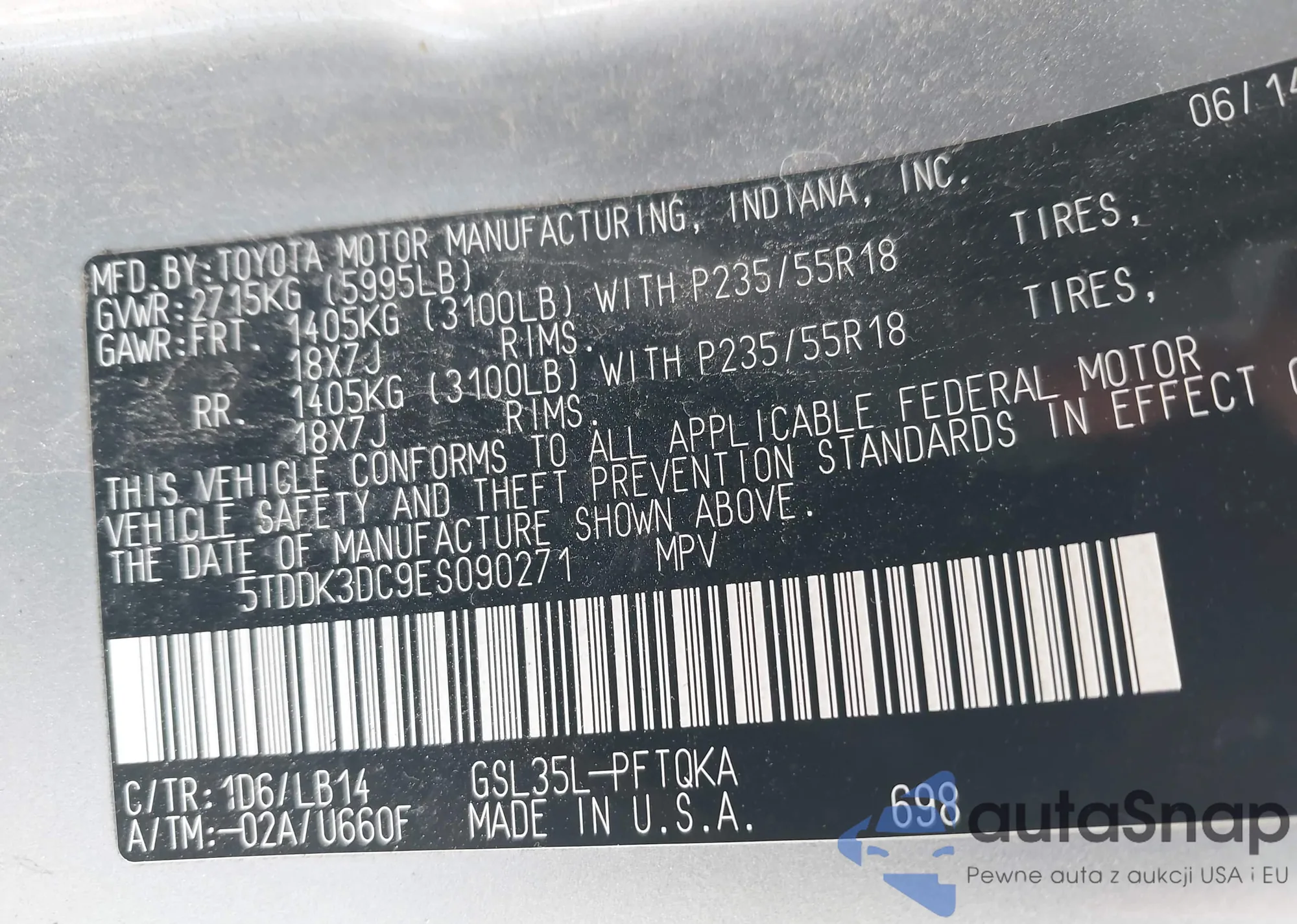 LOT: 43006413 VIN: 5TDDK3DC9ES090271