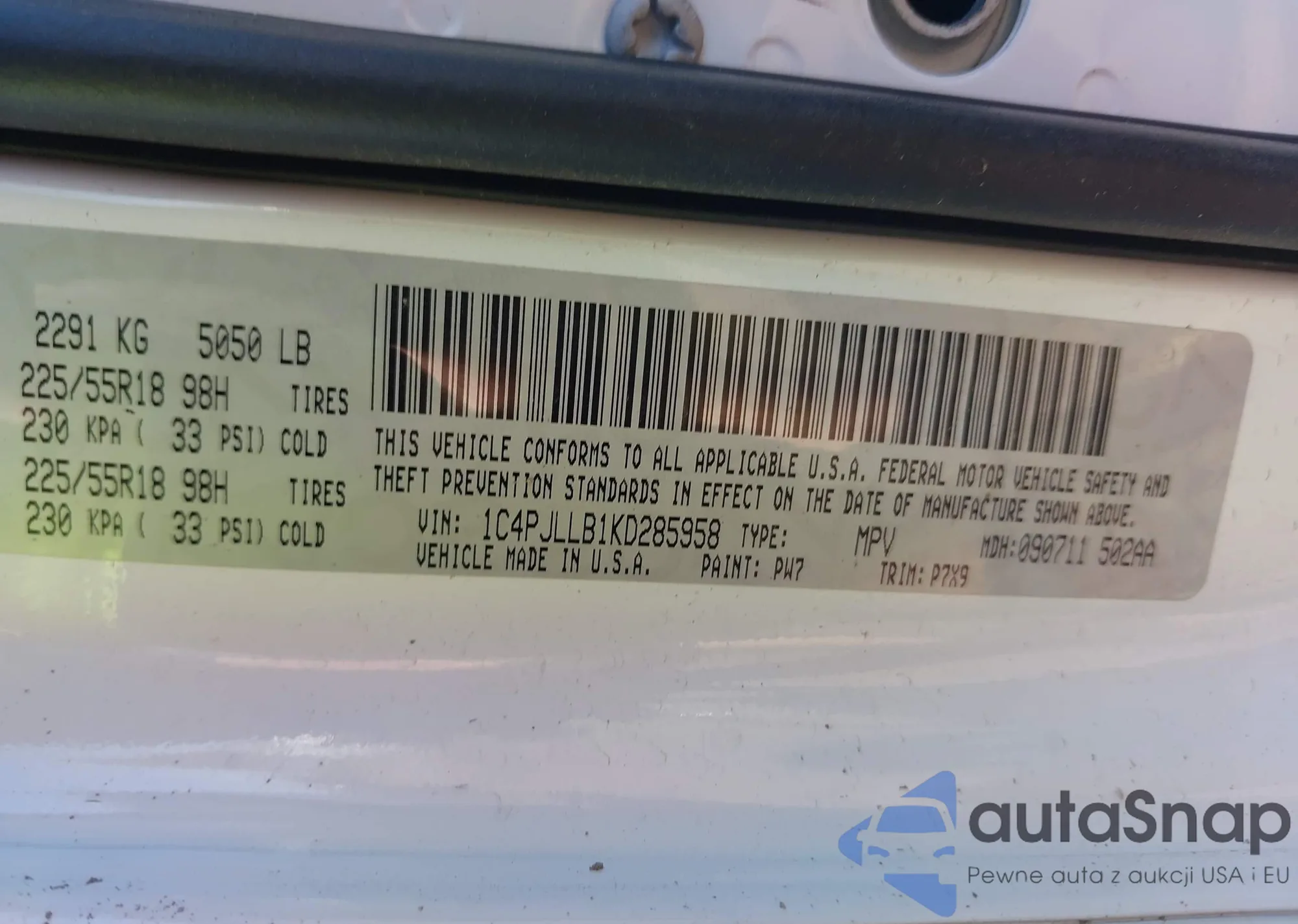 • VIN 1C4PJLLB1KD285958