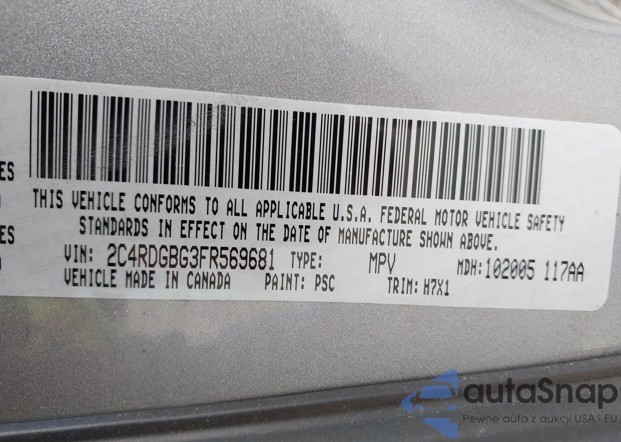 • VIN 1G6DG5RK7M0120837