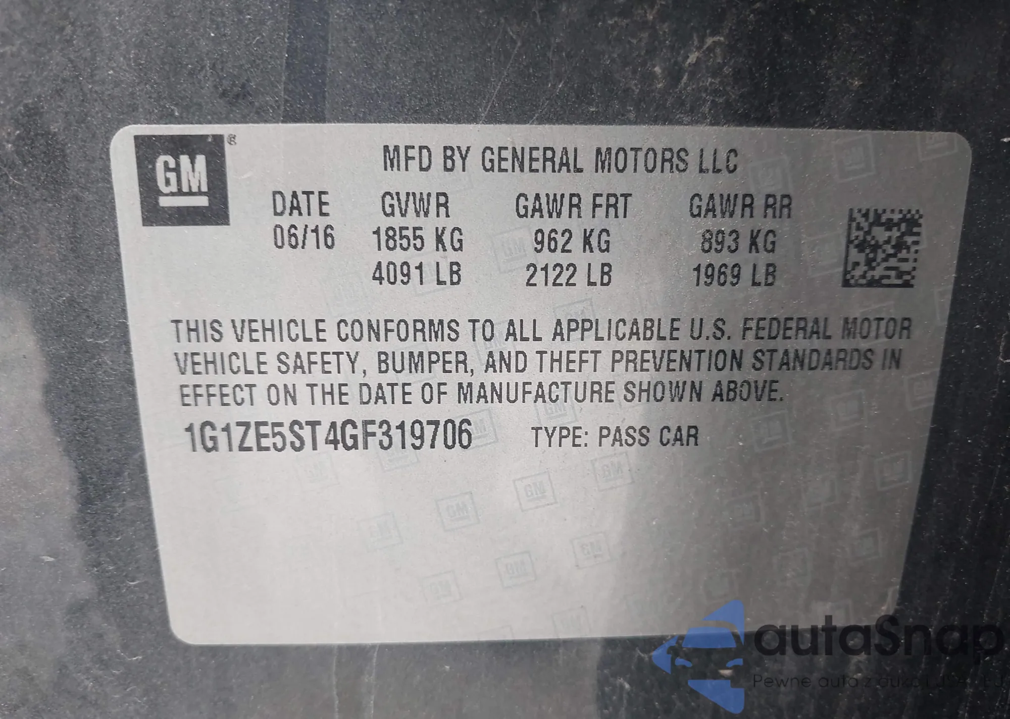 • VIN 1G1ZE5ST4GF319706
