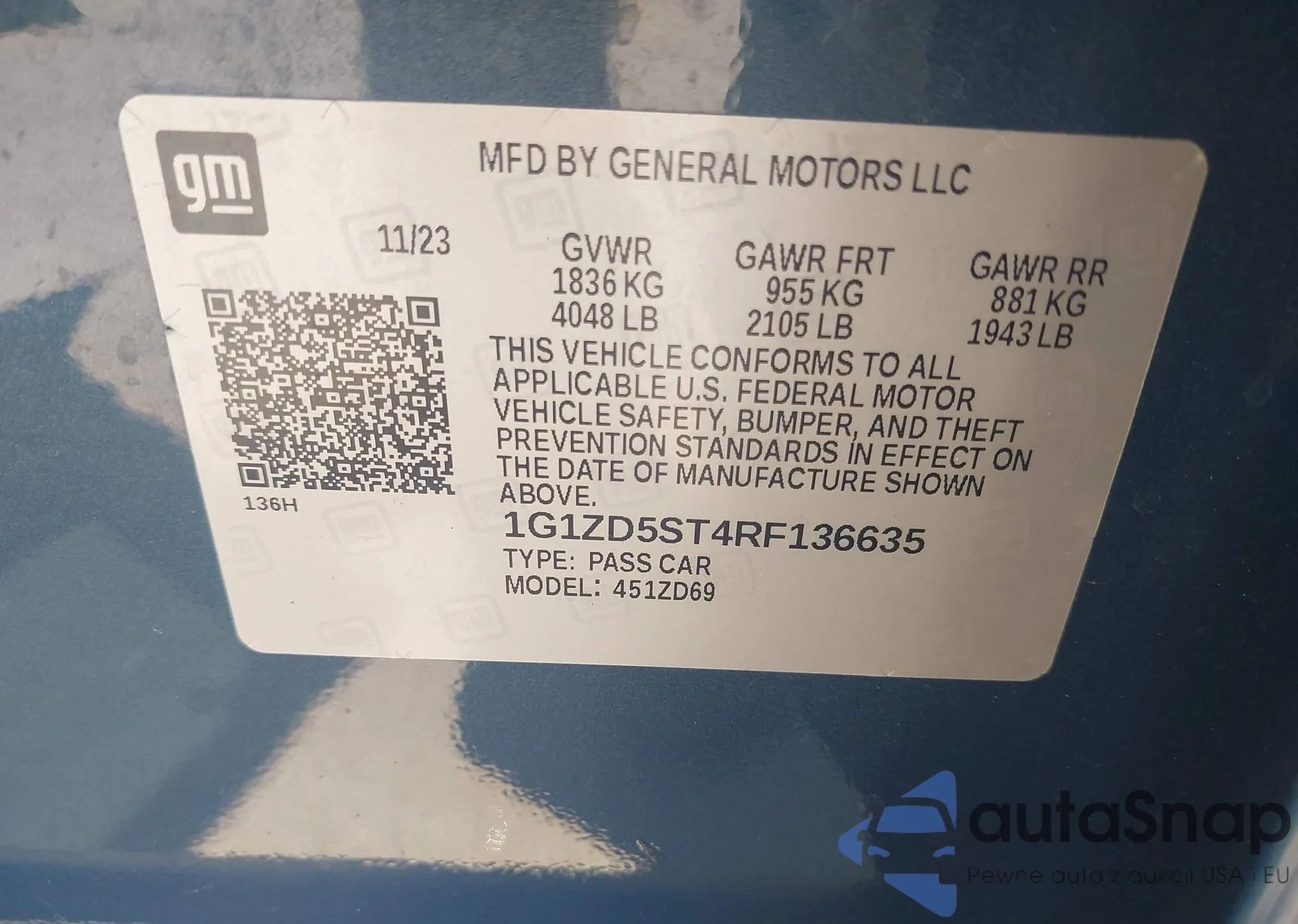 LOT: 43157967 VIN: 1G1ZD5ST4RF136635