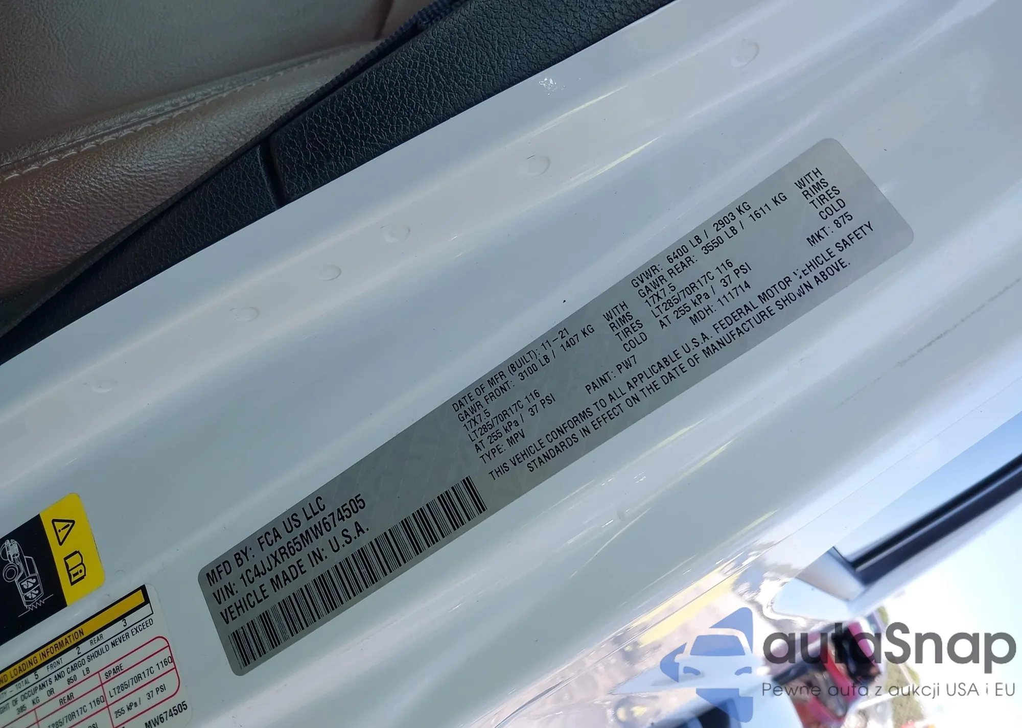 • VIN 1C4JJXR65MW674505