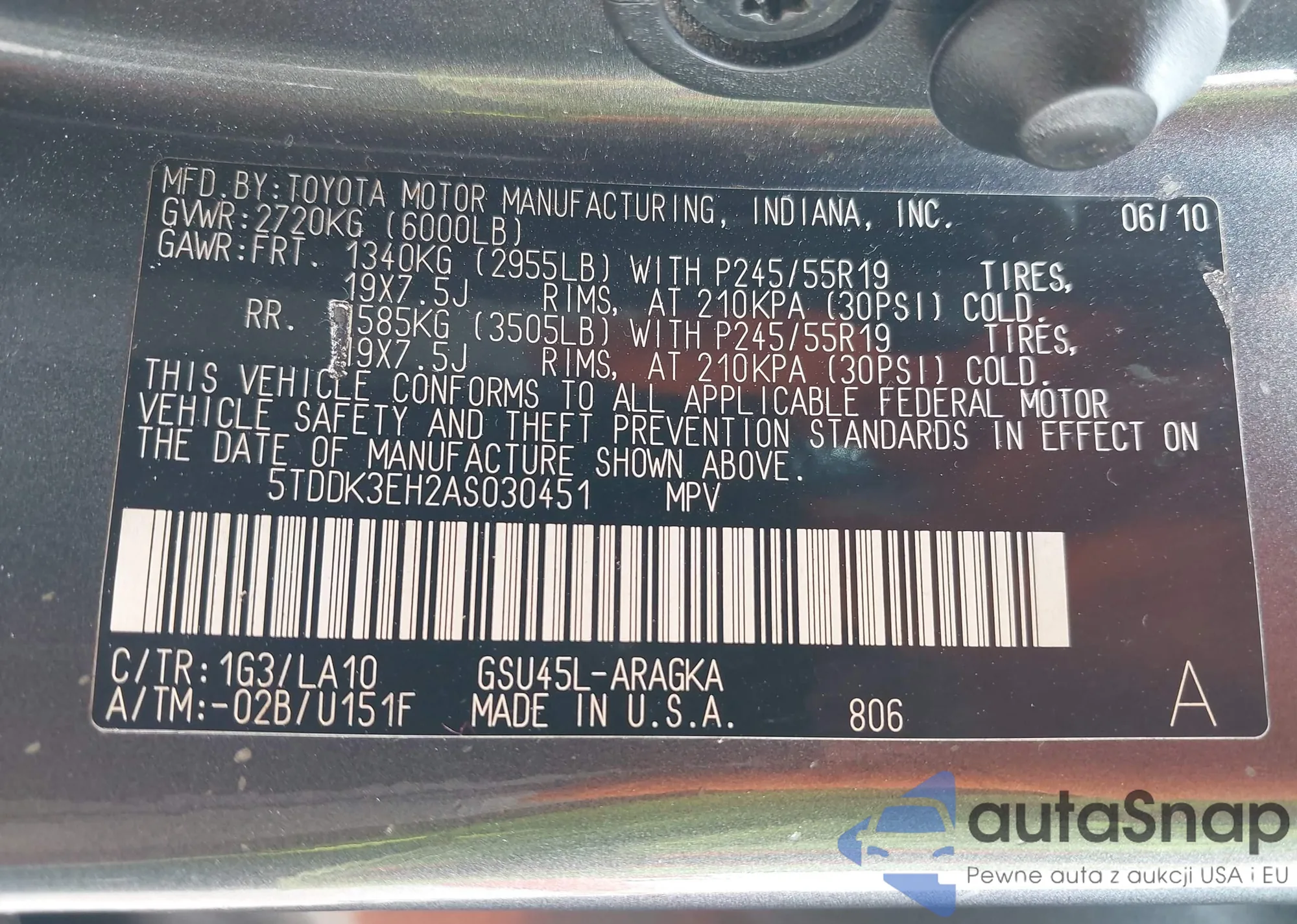 LOT: 43201791 VIN: 3GTN9AEF4MG245741
