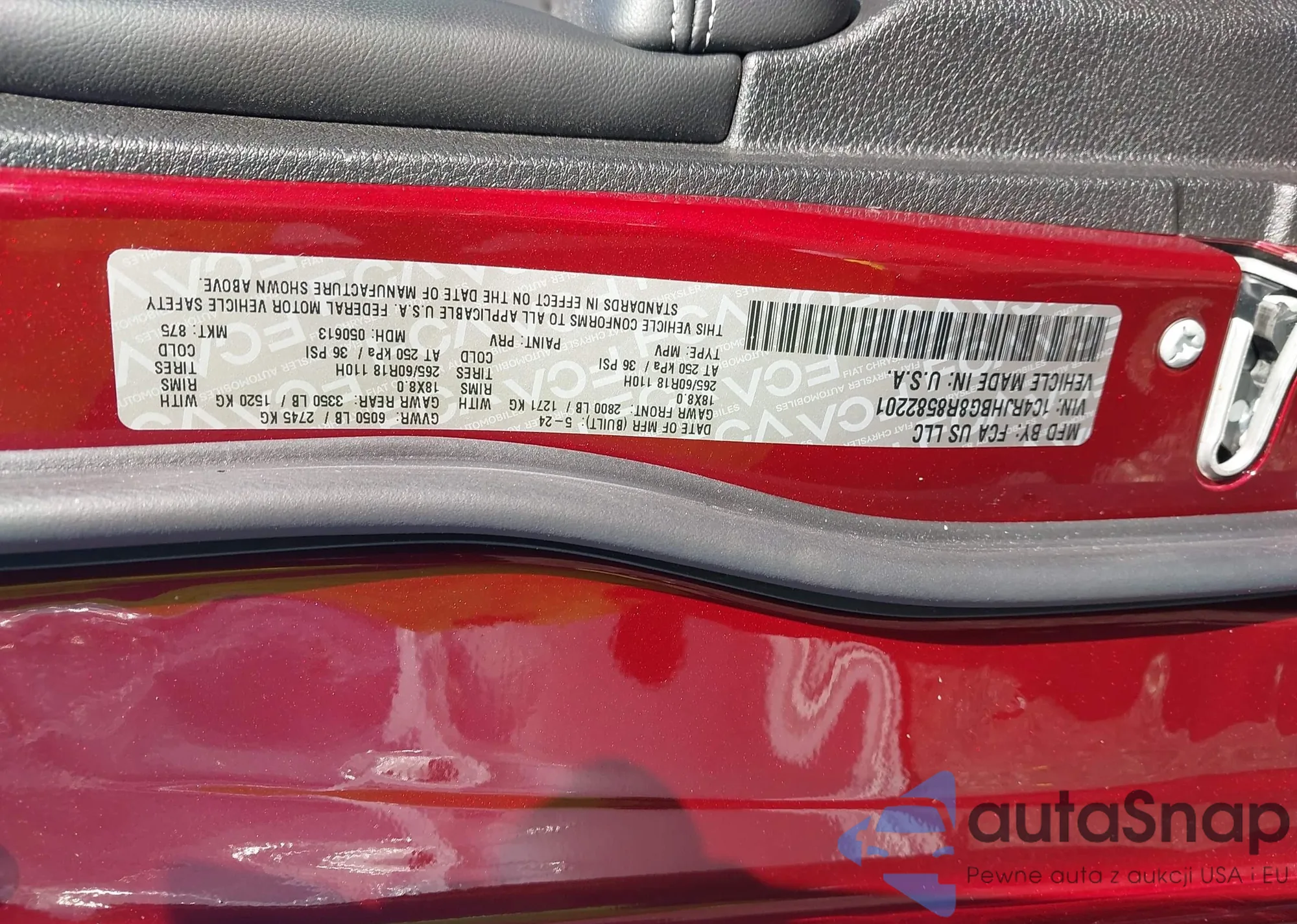 • VIN 1C4RJHBG8R8582201