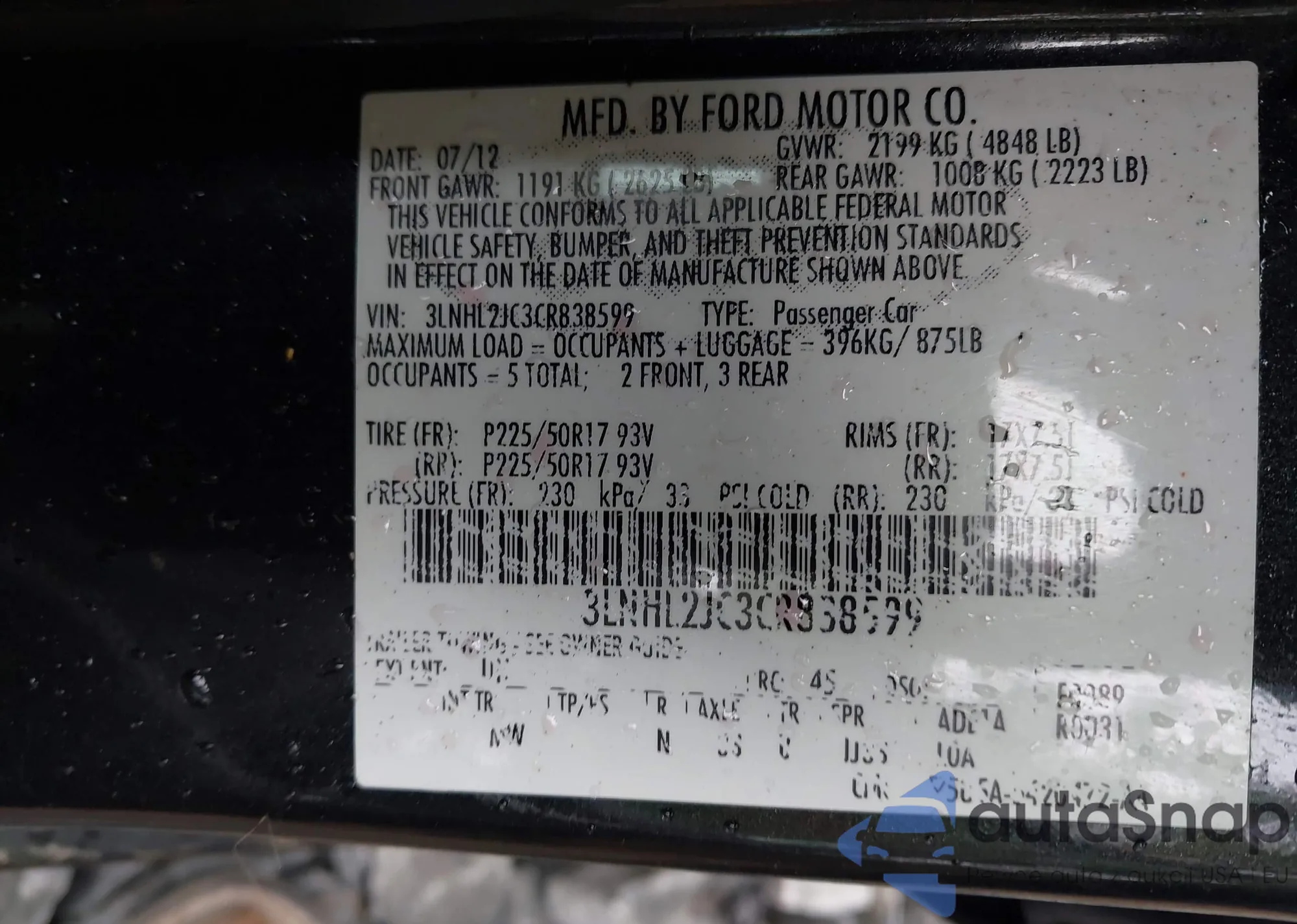 • VIN 3LNHL2JC3CR838599