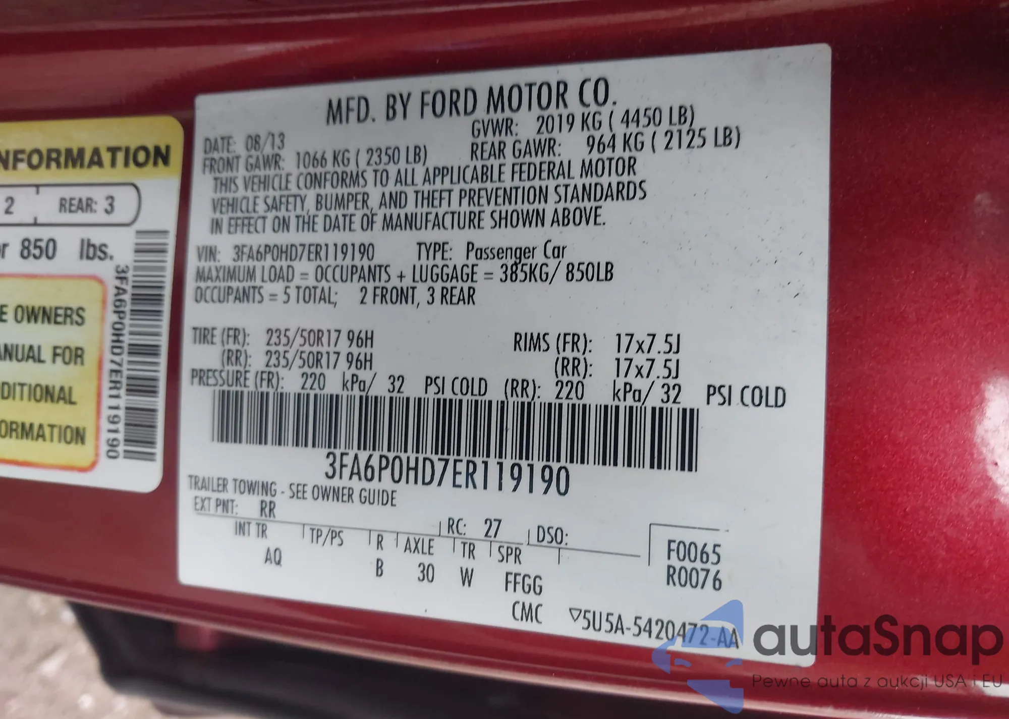 • VIN 3FA6P0HD7ER119190