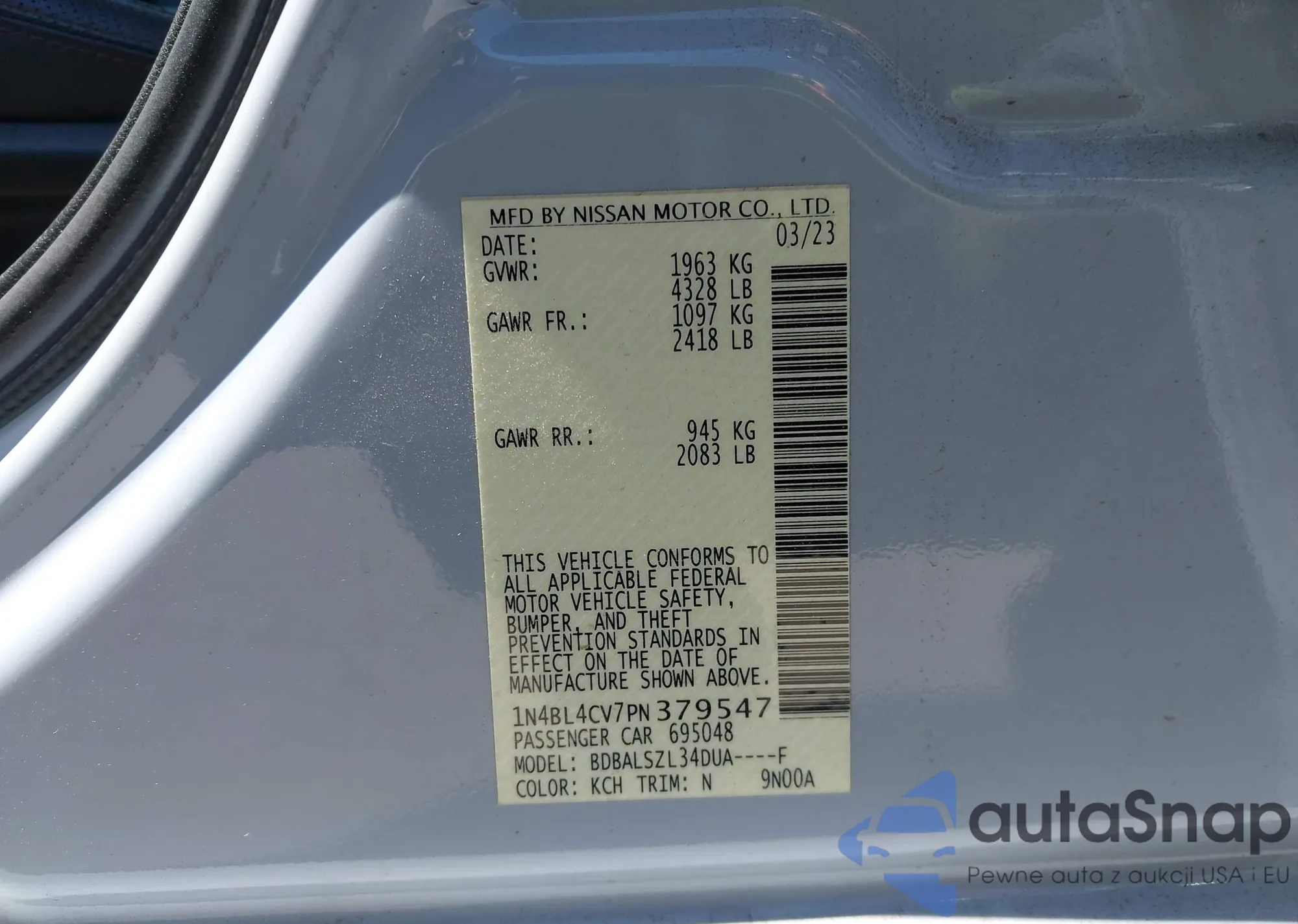 LOT: 43019918 VIN: 1N4BL4CV7PN379547