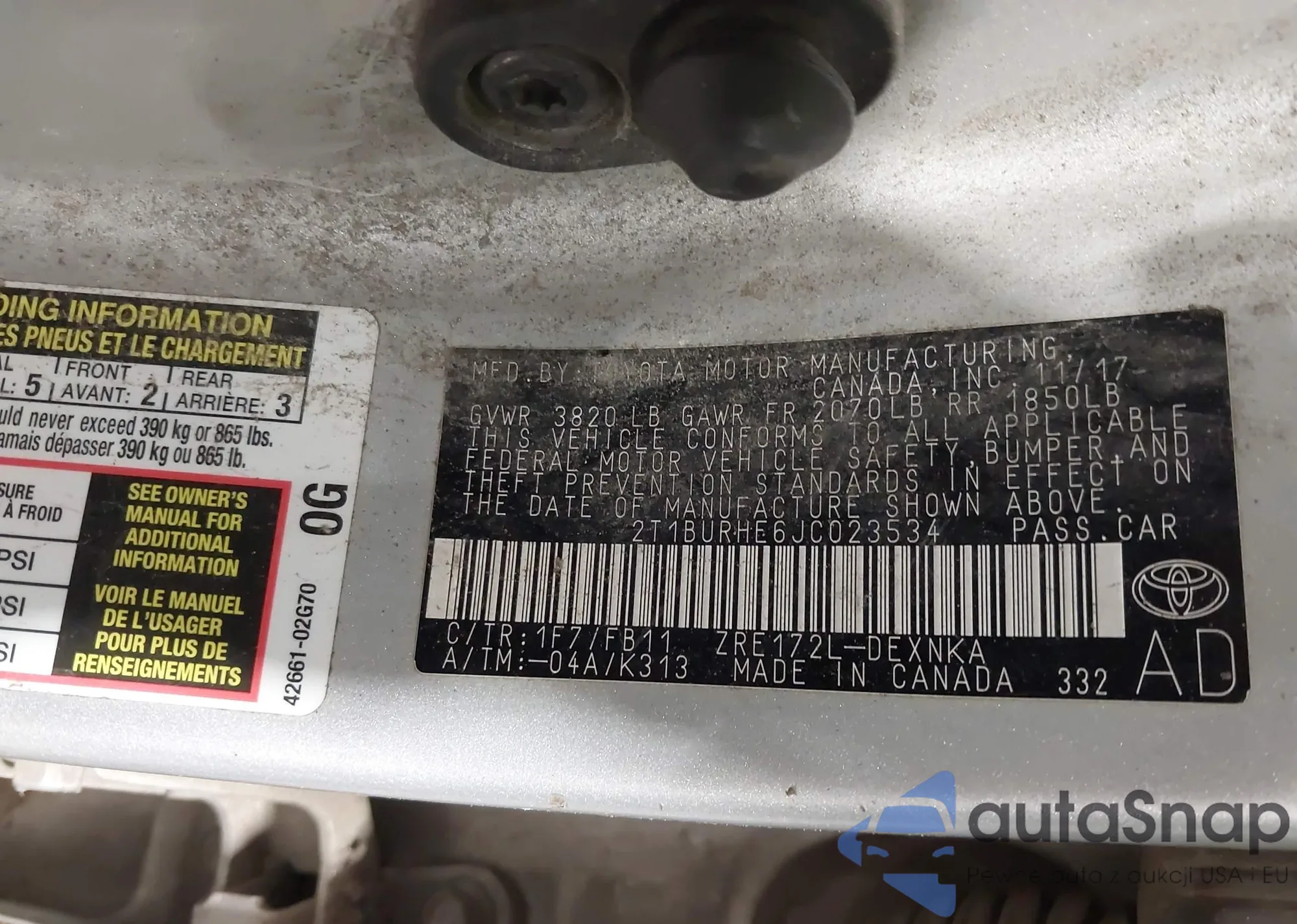 • VIN 4T1B11HK1JU607130