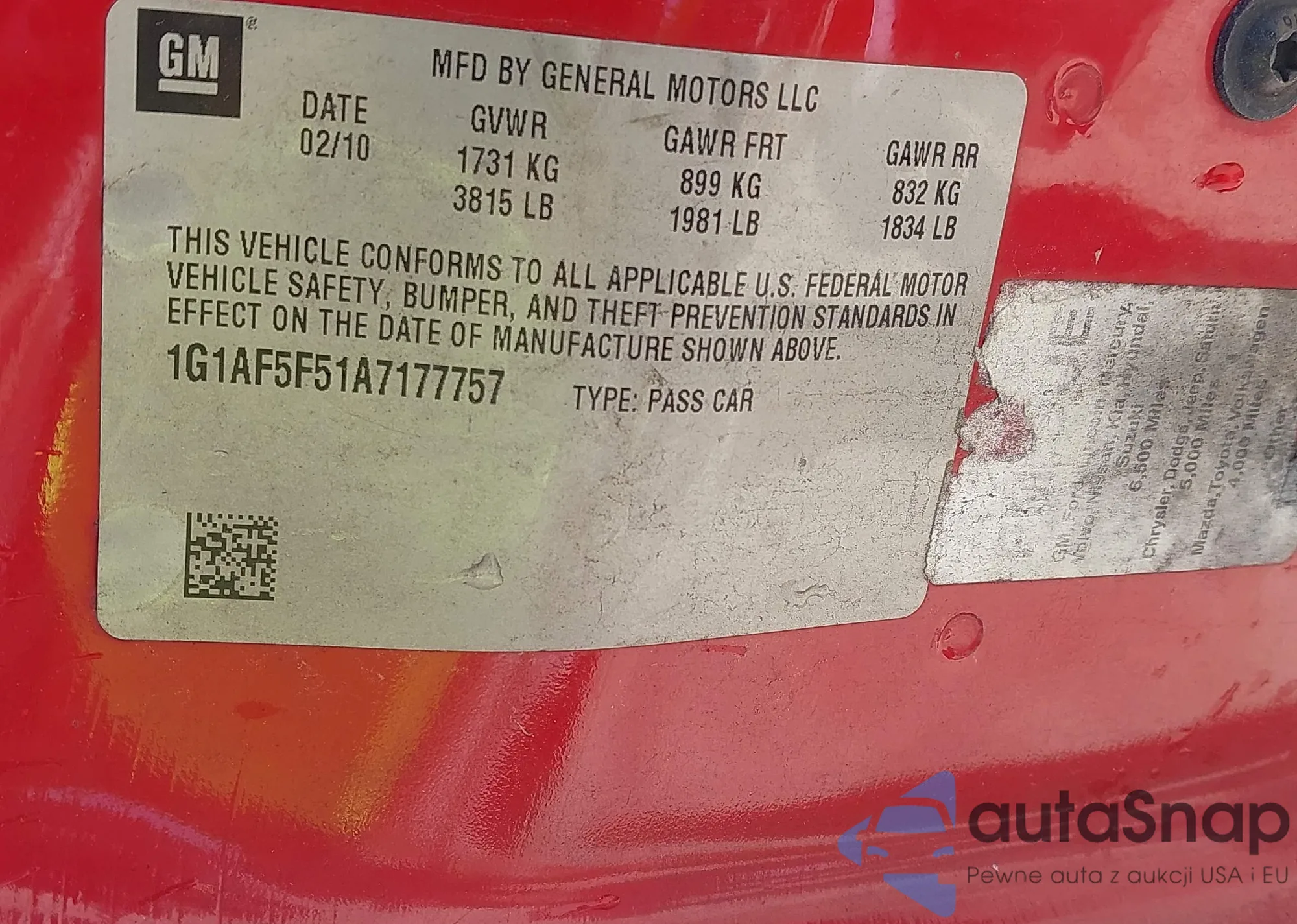• VIN 1G1AF5F51A7177757