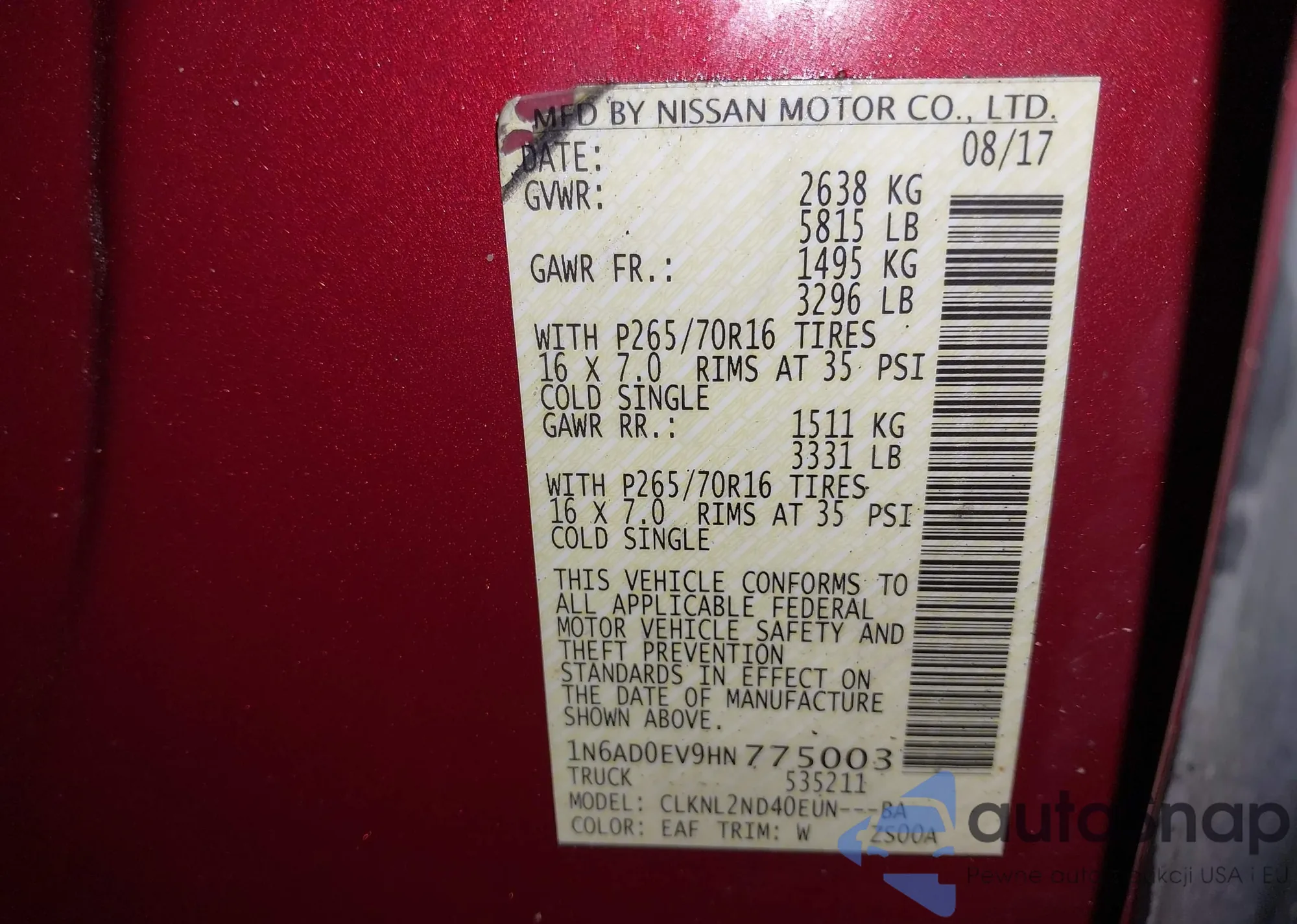 • VIN 1N6AD0EV9HN775003