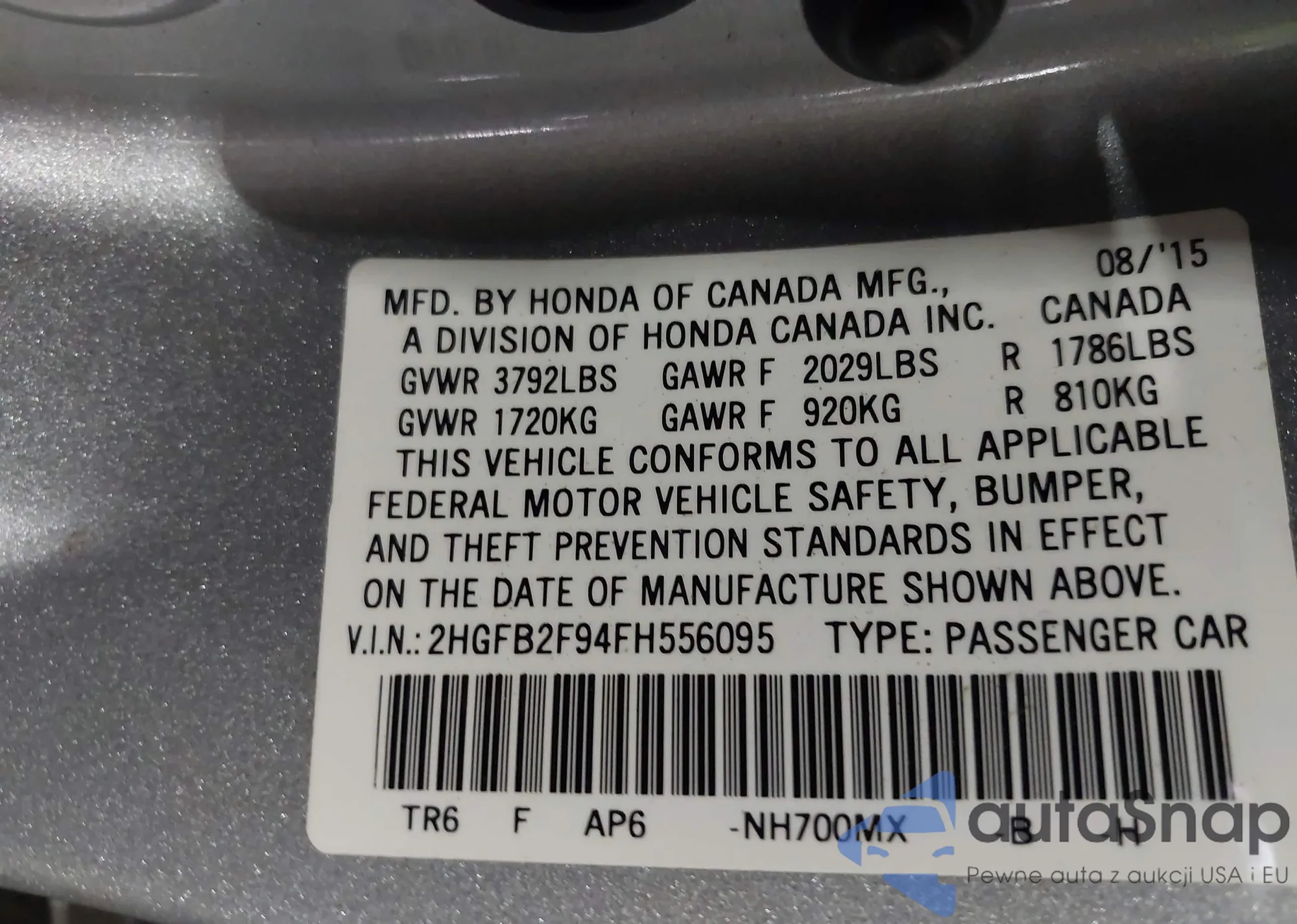 • VIN 2HGFB2F94FH556095