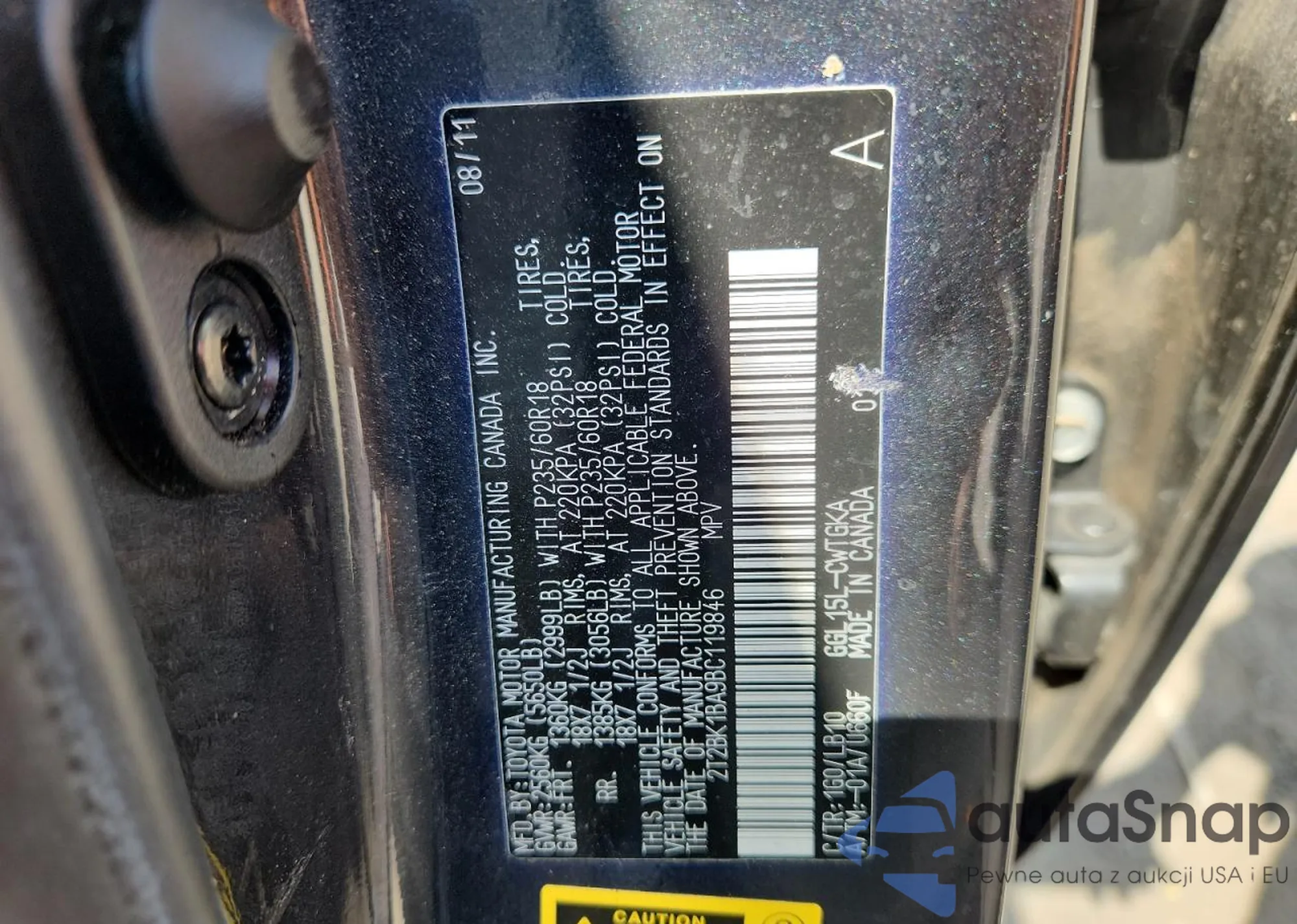 LOT: 68160385 VIN: 2T2BK1BA9BC119846
