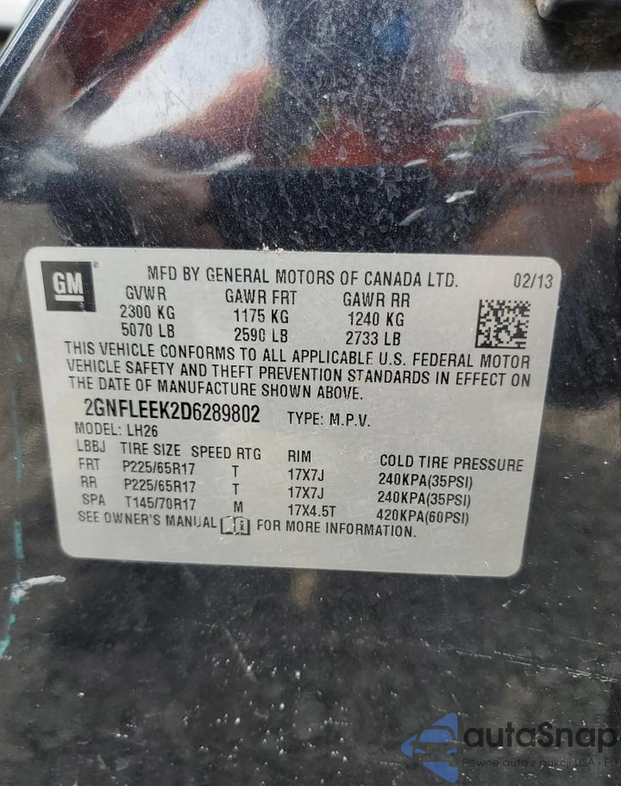 • VIN 2GNFLEEK2D6289802