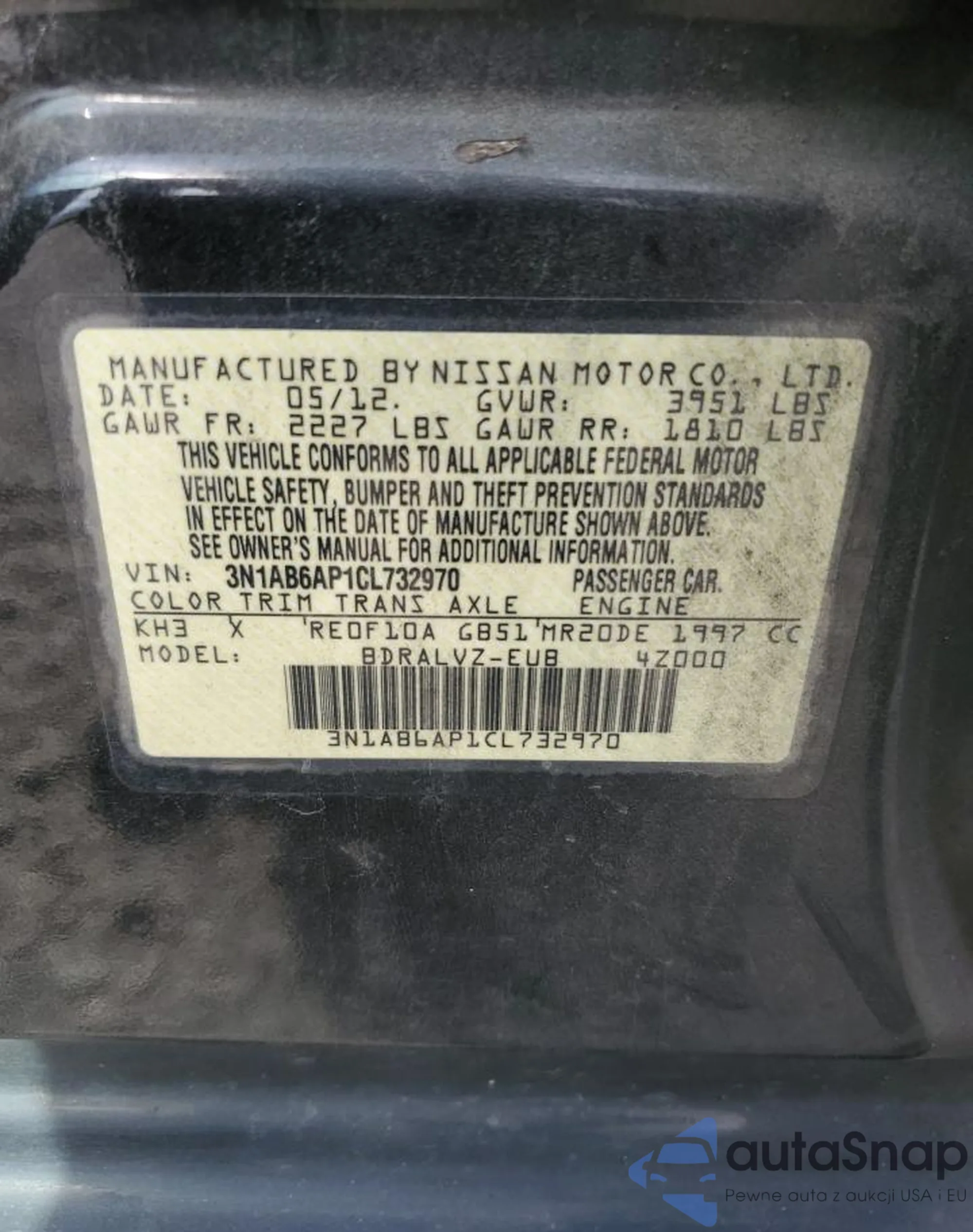 LOT: 81822895 VIN: 3N1AB6AP1CL732970