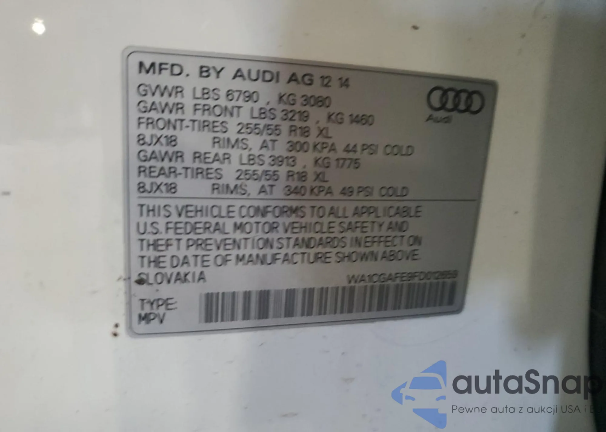 LOT: 85296555 VIN: WA1CGAFE9FD012659