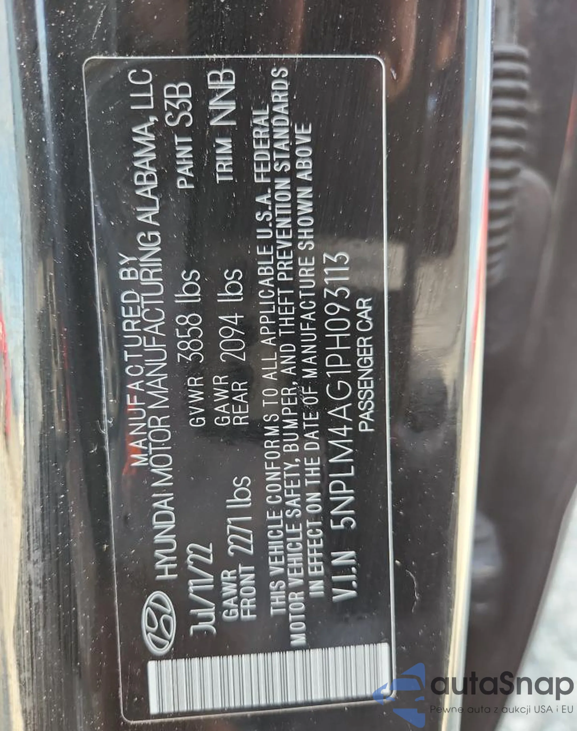 LOT: 65015255 VIN: 5NPLM4AG1PH093113