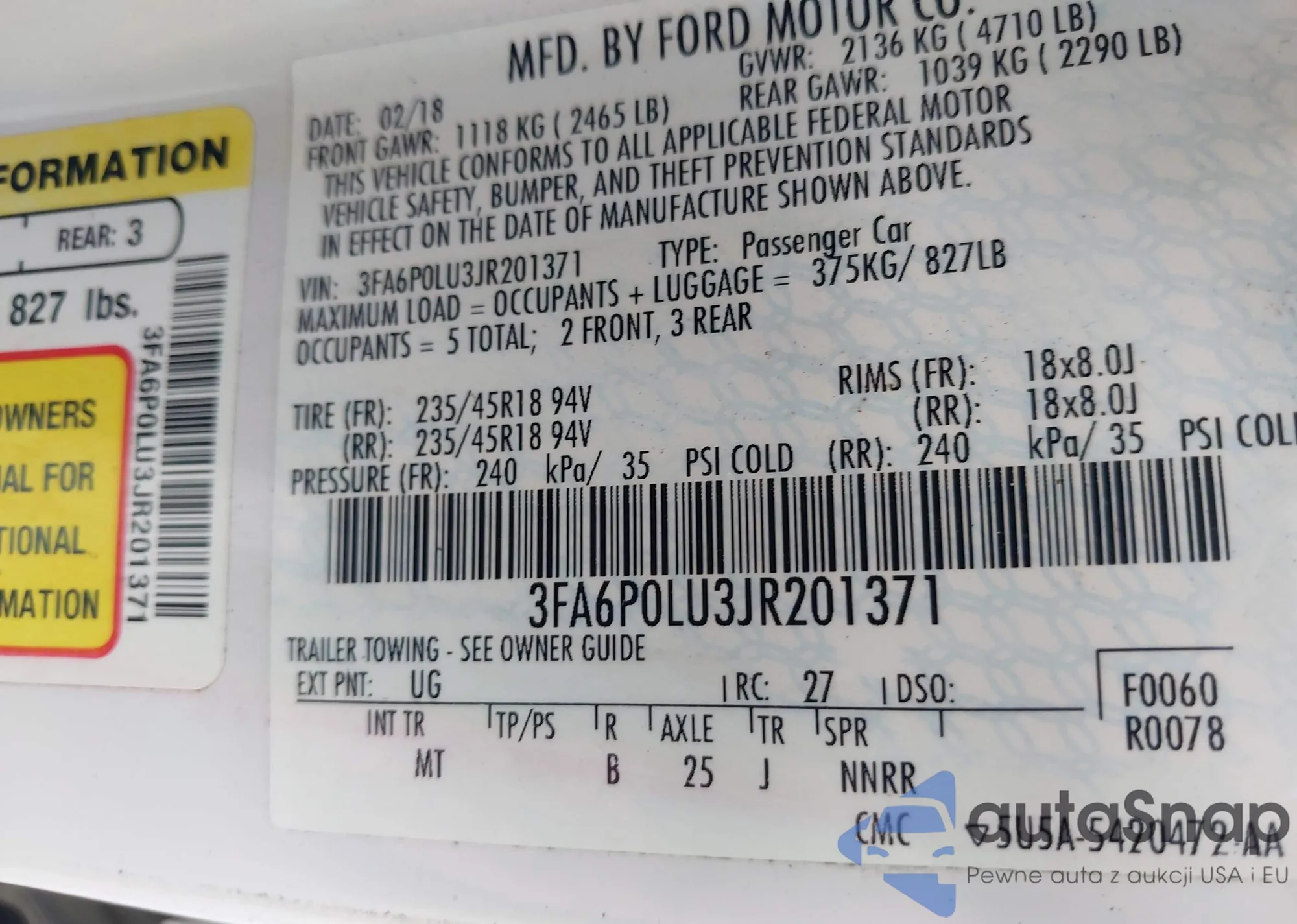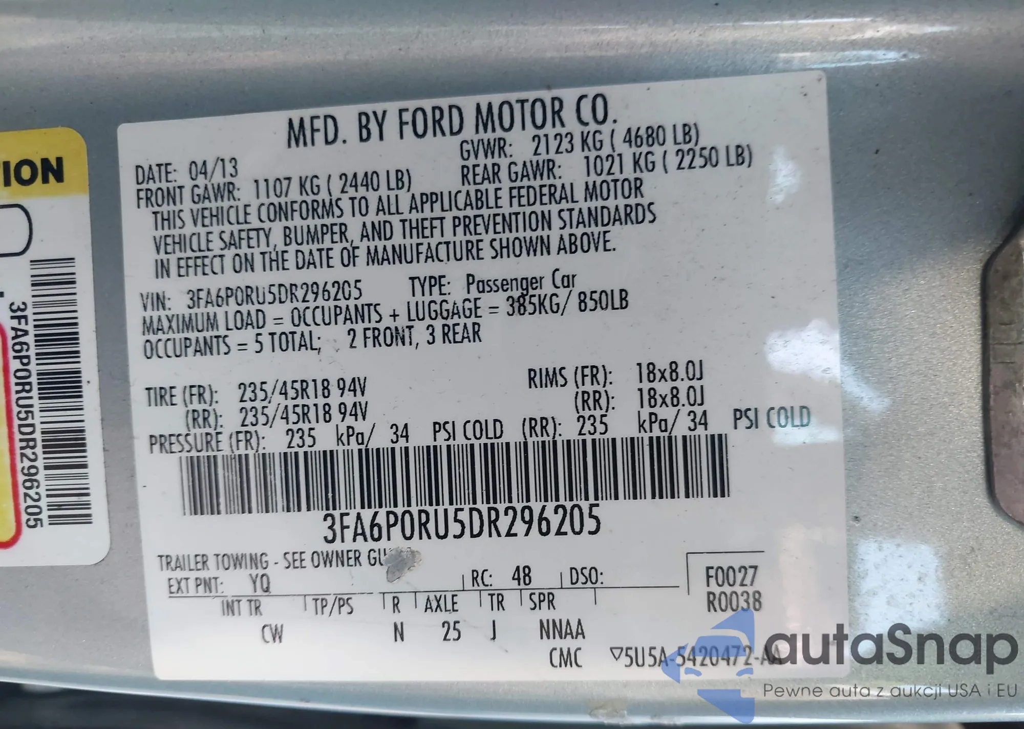 • VIN 3FA6P0RU5DR296205