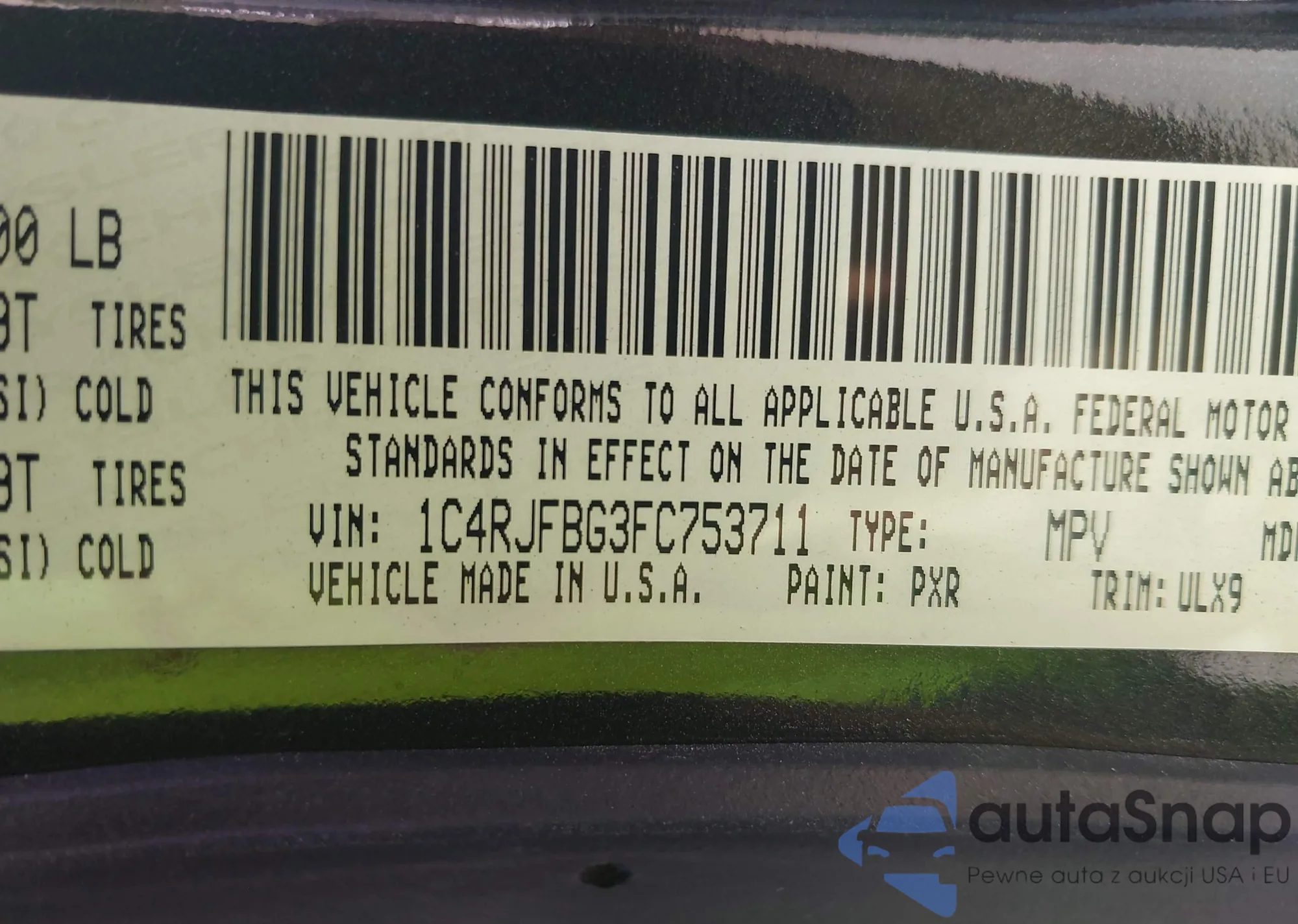 LOT: 43265956 VIN: 1C4RJFBG3FC753711