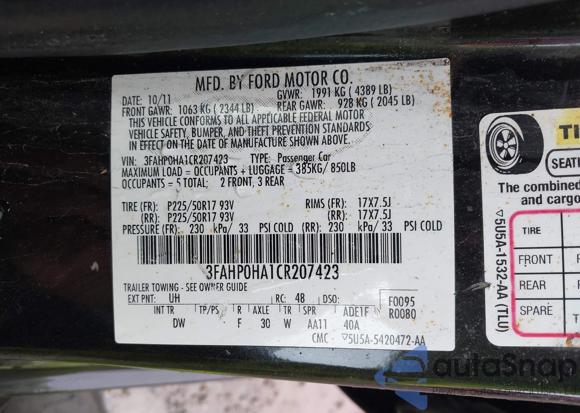• VIN 3FAHP0HA1CR207423