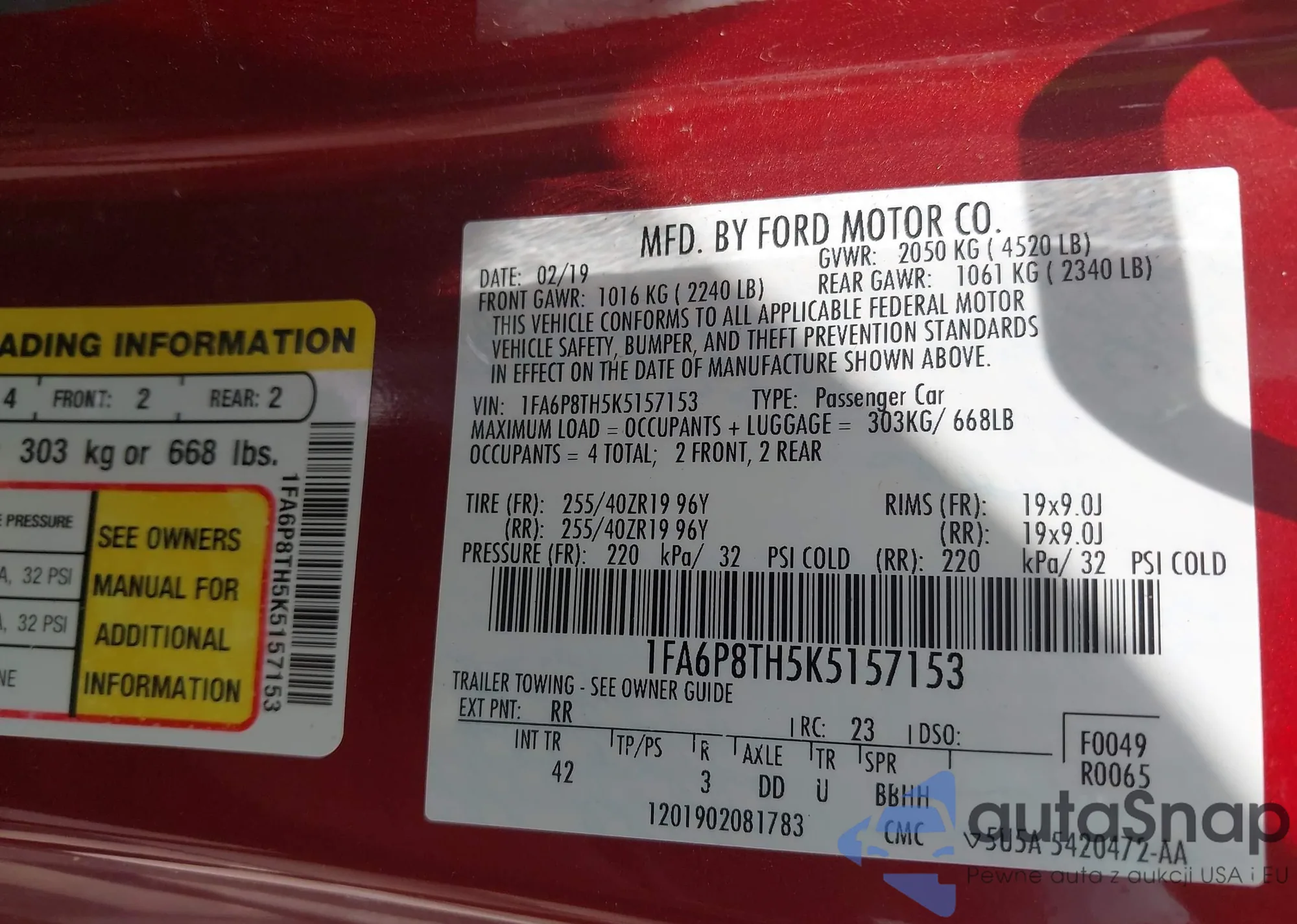 • VIN 1FA6P8TH5K5157153