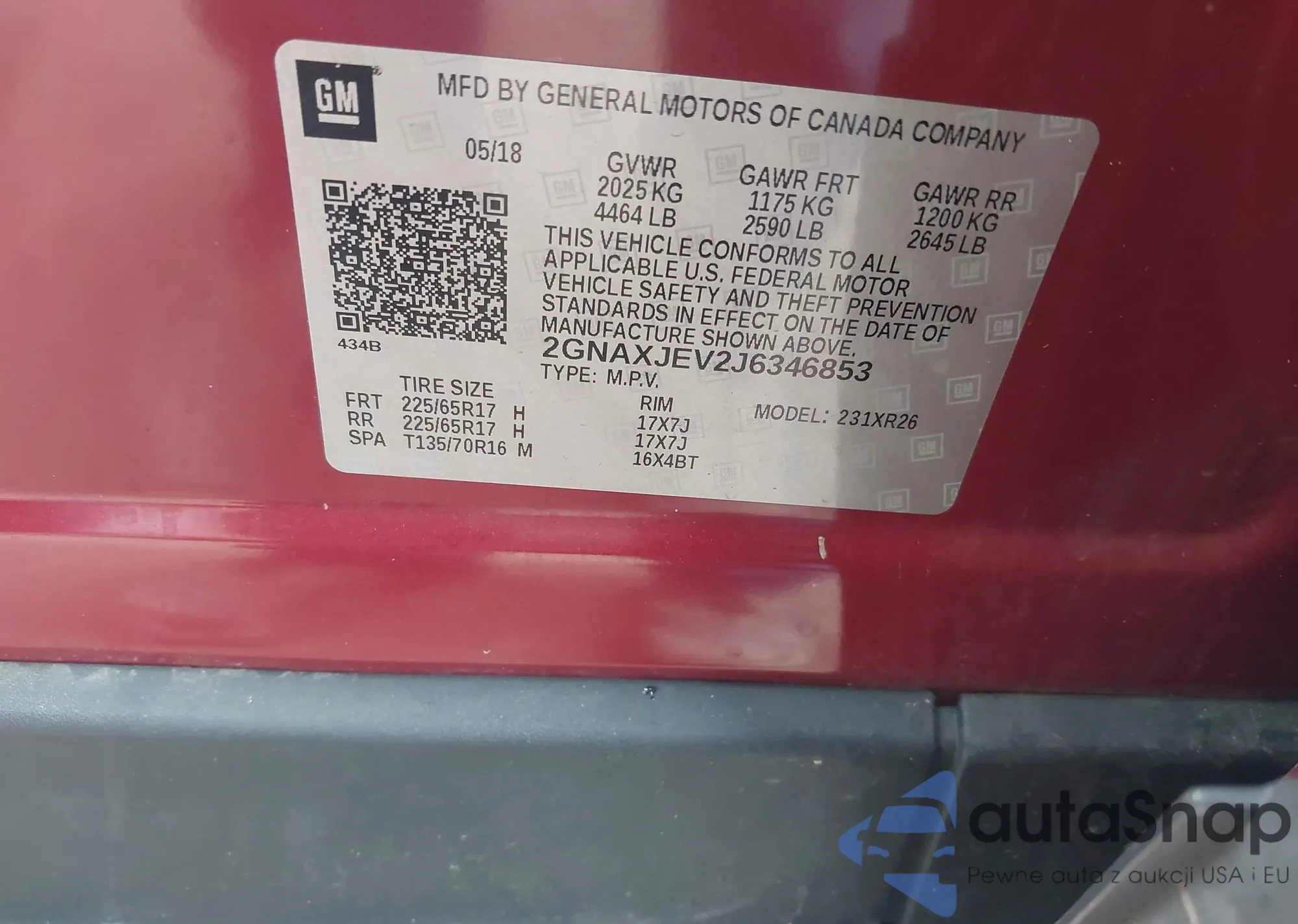 LOT: 43297983 VIN: 2GNAXJEV2J6346853