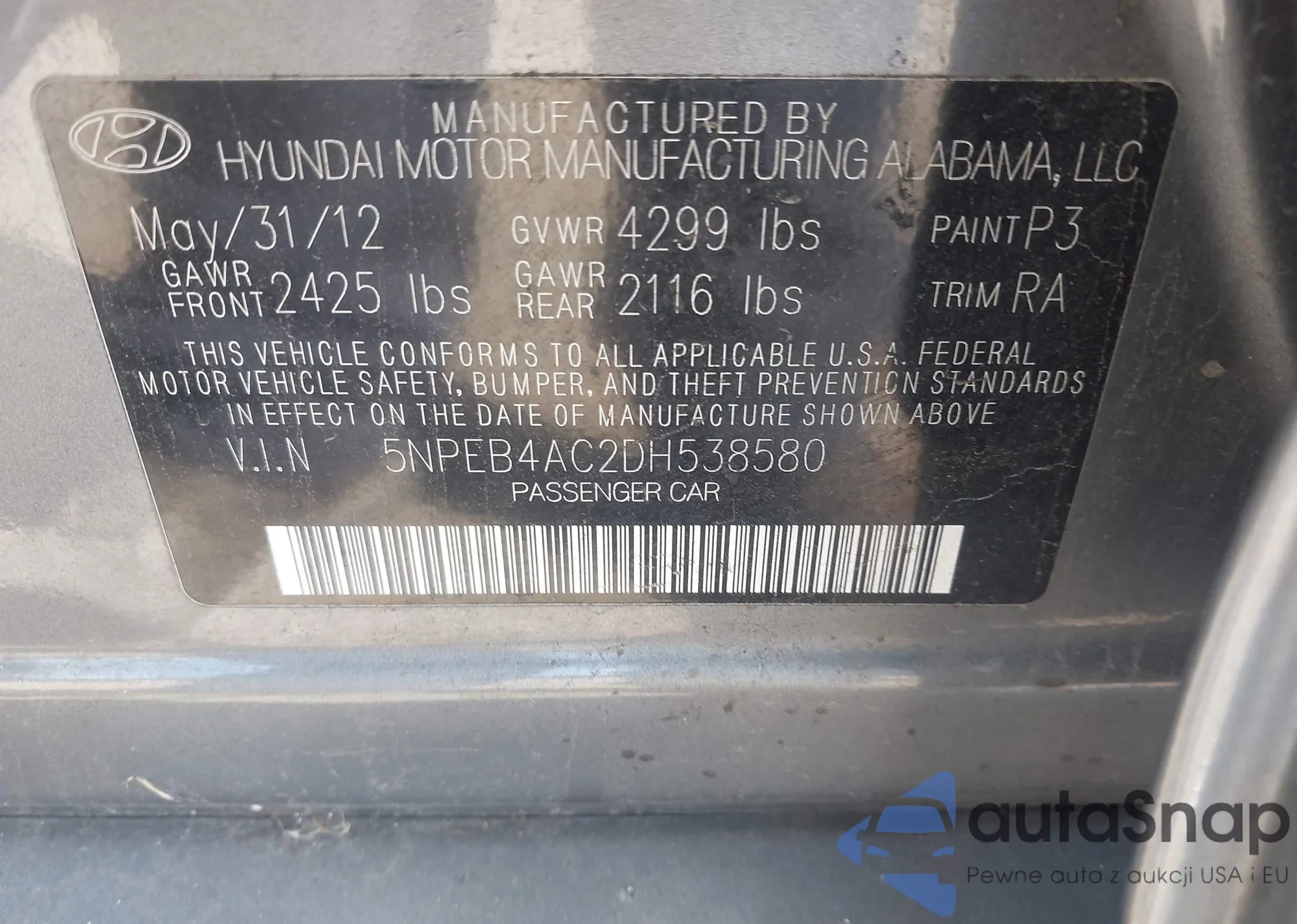 • VIN 5NPEB4AC2DH538580