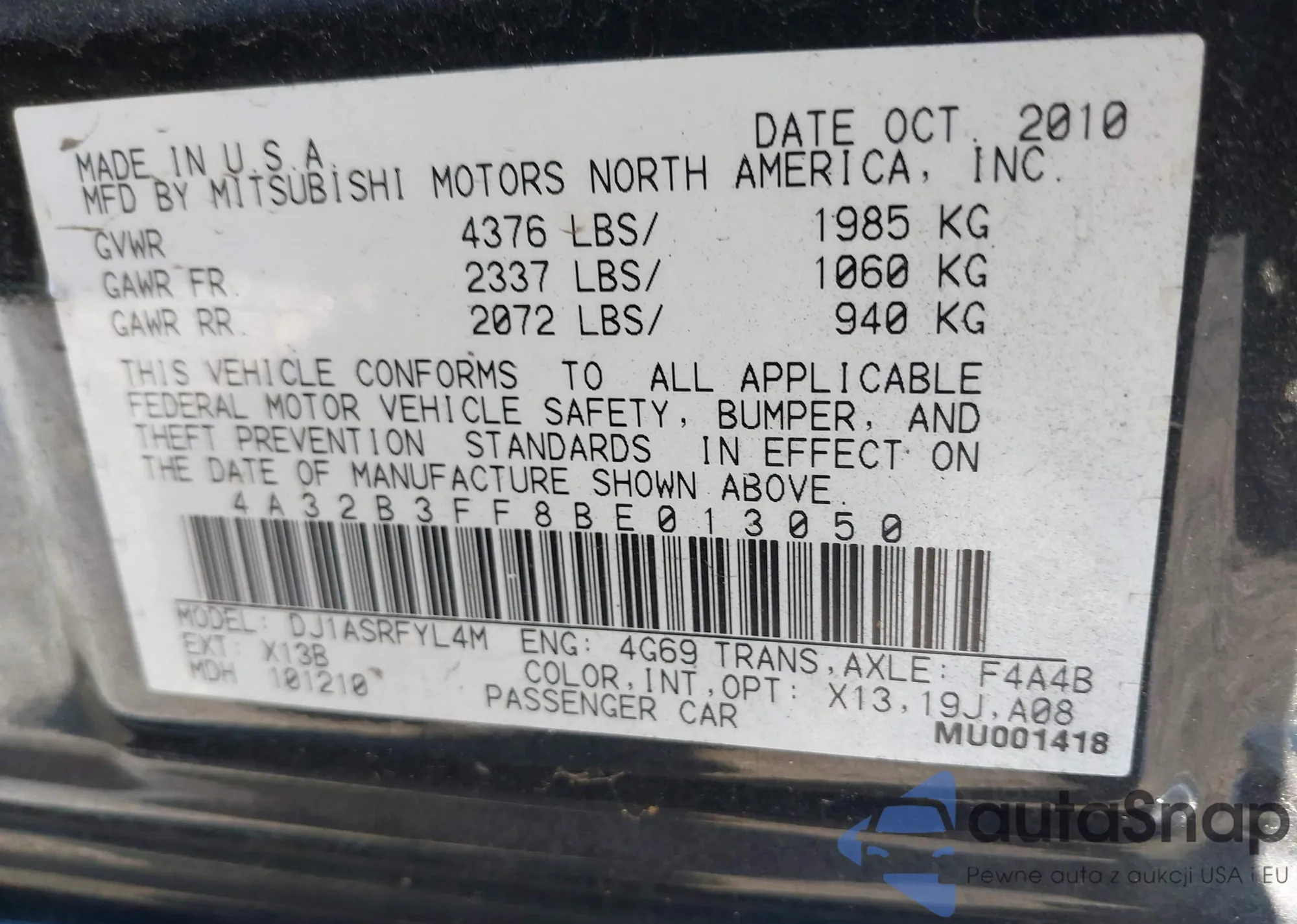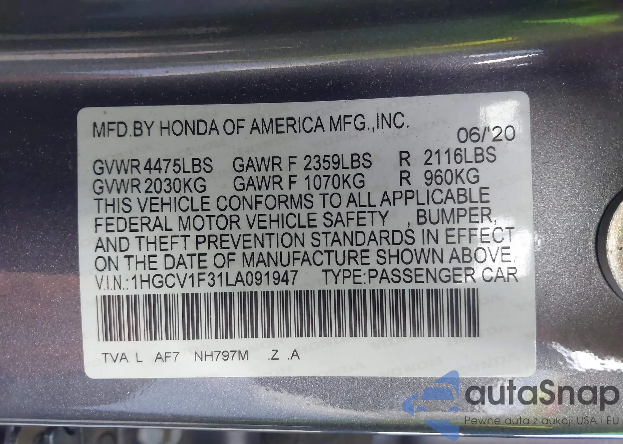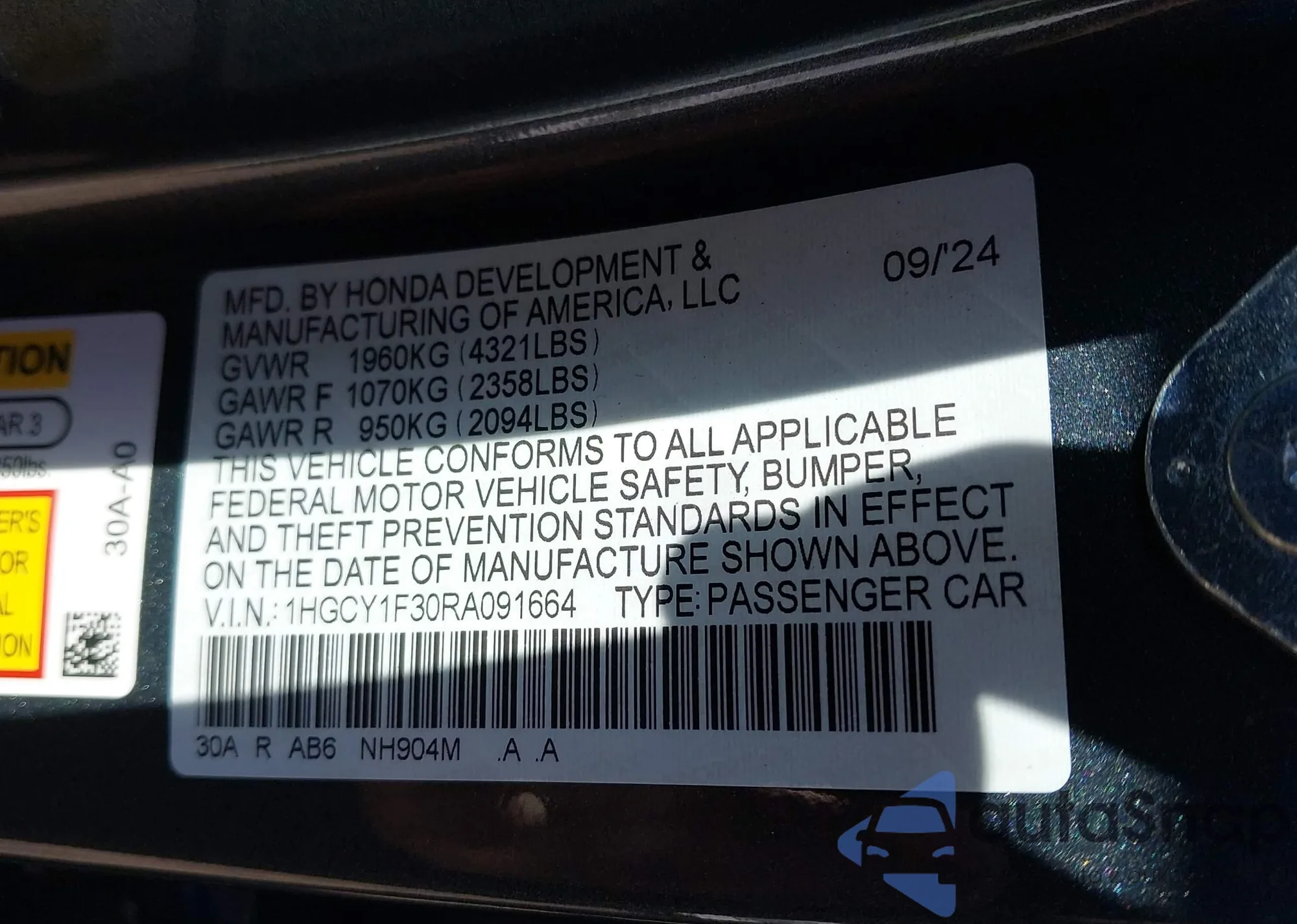 LOT: 43331573 VIN: 1HGCP2F32BA079577
