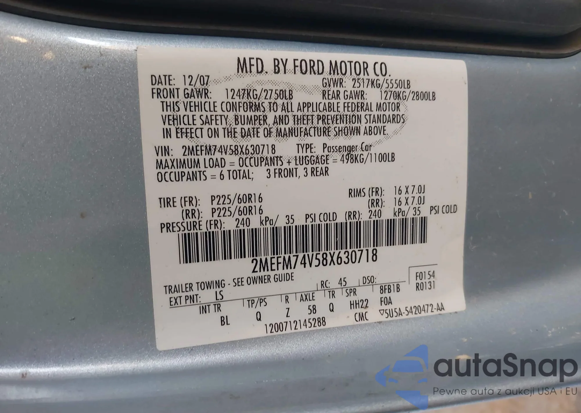 LOT: 43228673 VIN: 2MEFM74V58X630718