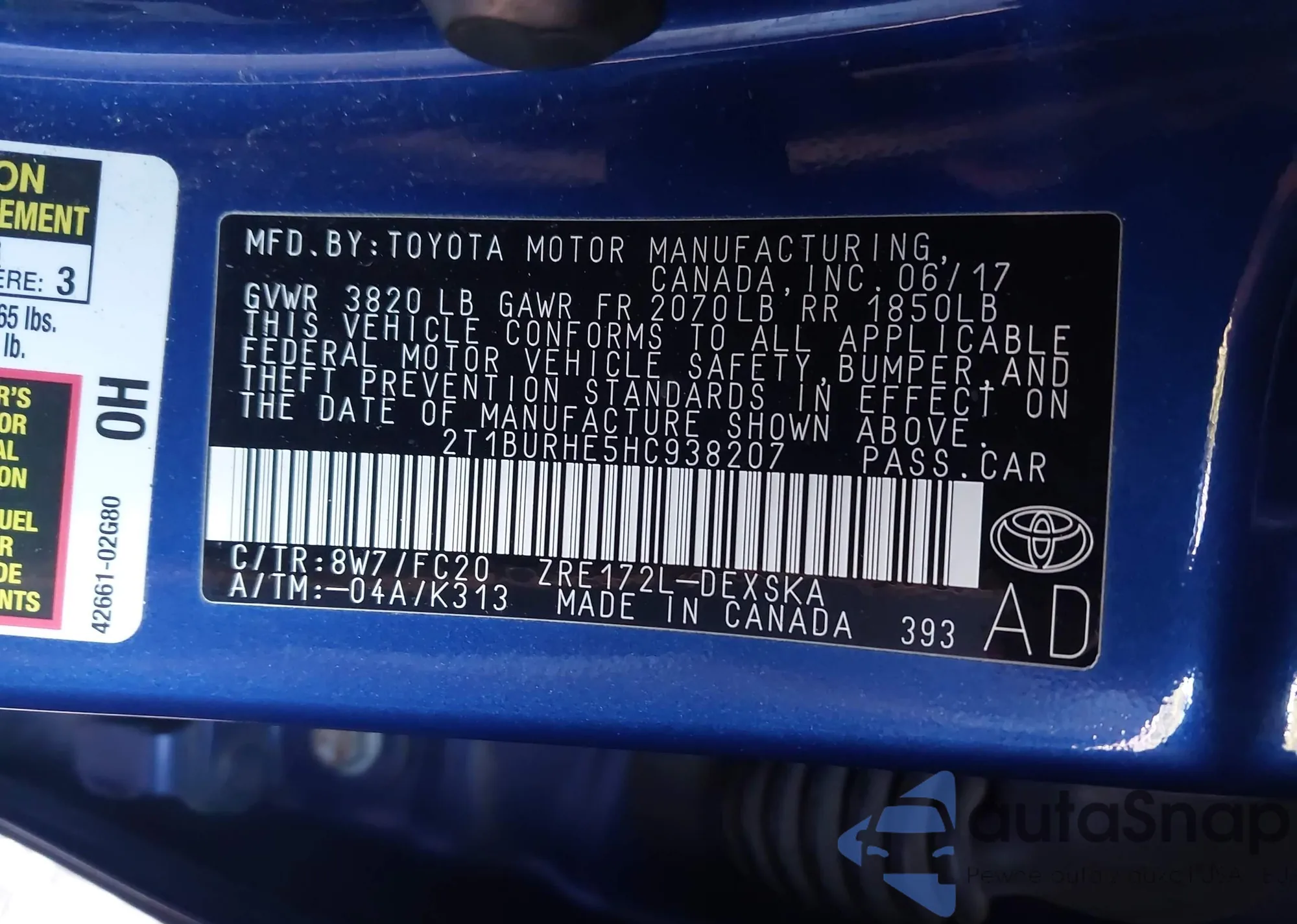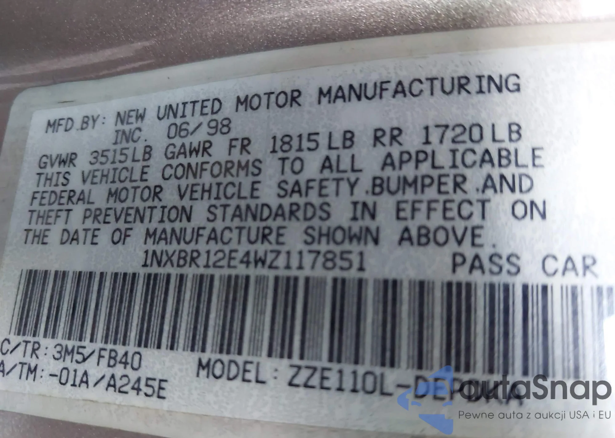 LOT: 43422112 VIN: 1NXBR12E4WZ117851