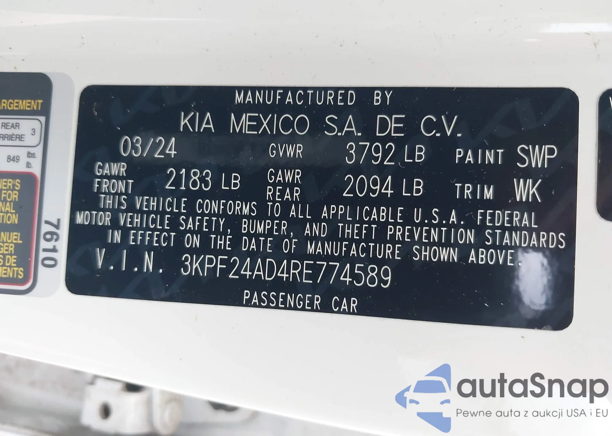 • VIN 3KPF24AD4RE774589