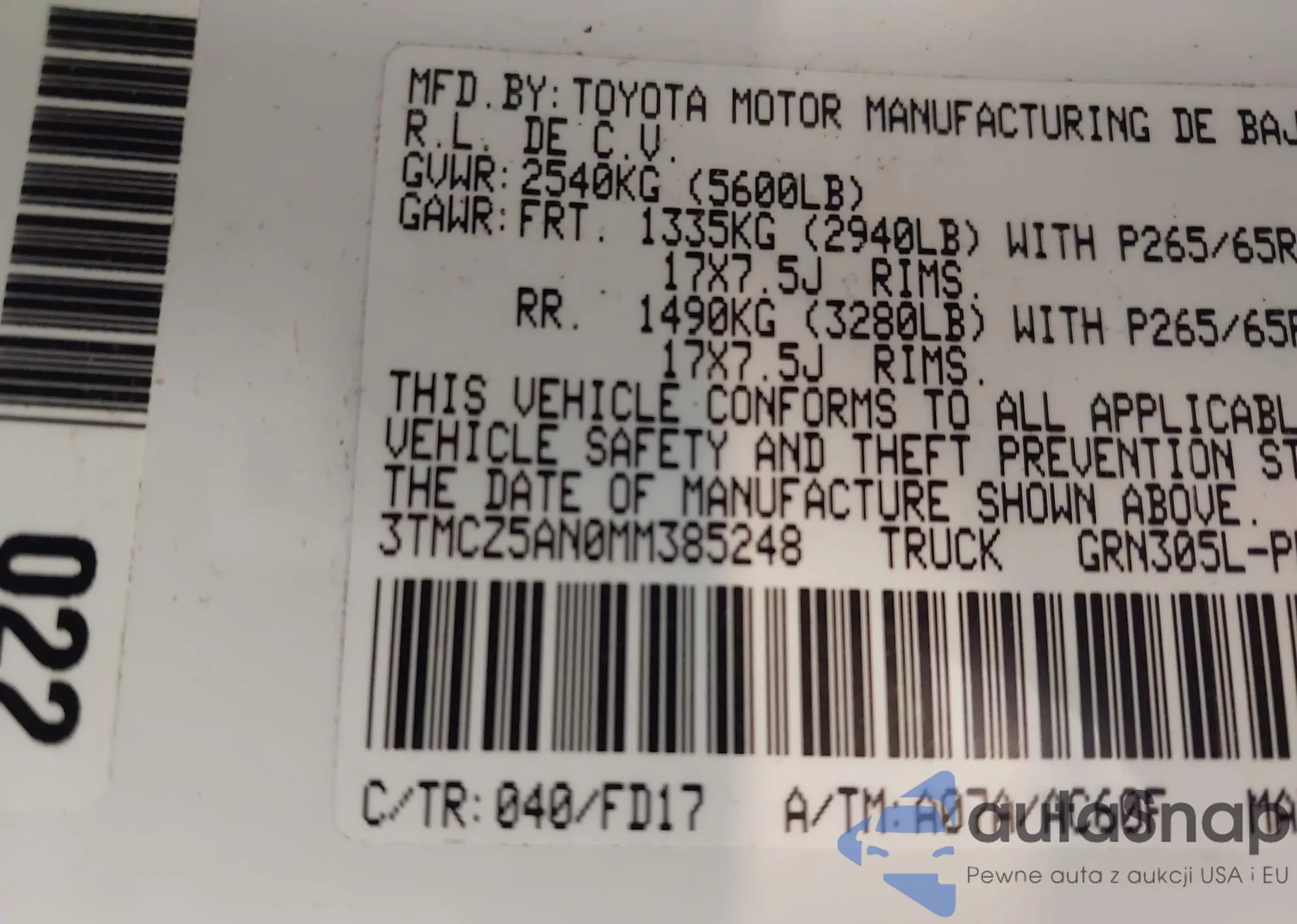 • VIN 3TMCZ5AN0MM385248