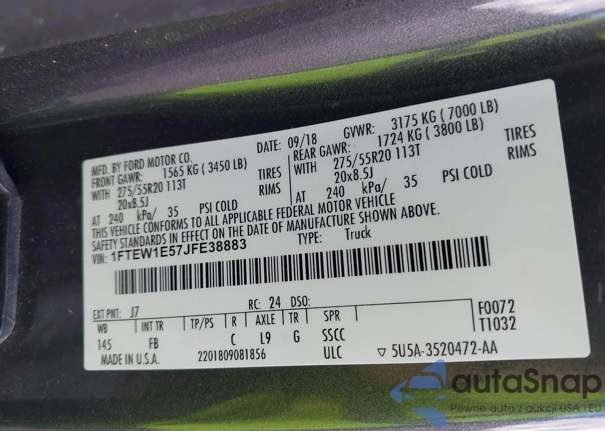 LOT: 43299375 VIN: 1FTEW1E57JFE38883